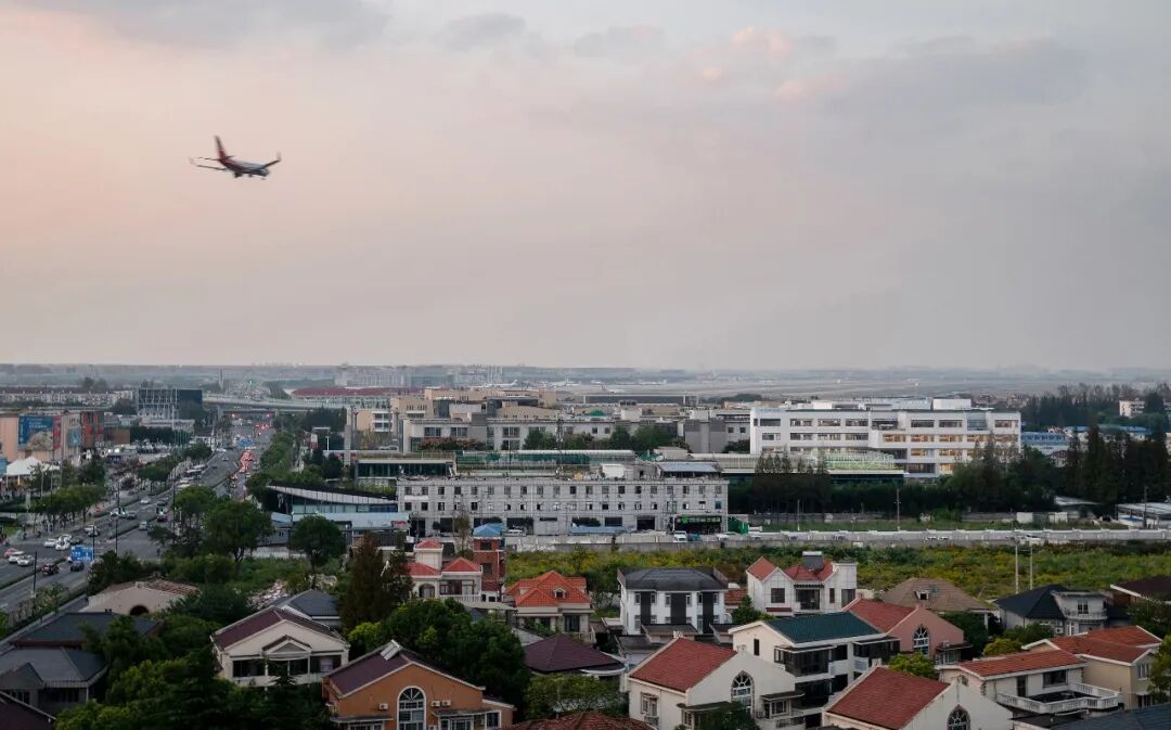 中庭楼梯最终将流线带至屋顶活动露台,在这里视野瞬间打开,向南可以俯瞰校园,向北可以远眺虹桥机场。露台地面上巨大的学校标识平行于航道方向,仿佛在与将要降落的飞机招手对话。露台尽管不大,但为校园提供了一处有关天空、飞翔和远方的想象空间。