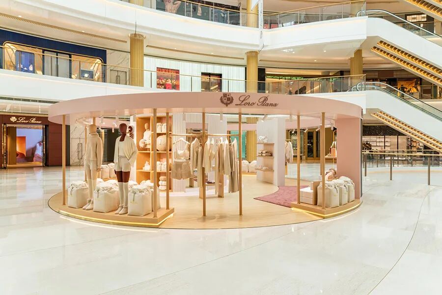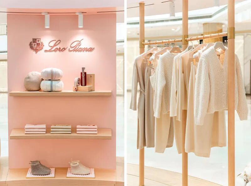 10 月 13 日,Loro Piana 在上海恒隆广场 1 层中庭开出了 Cocooning 系列限时店。限时店设计和 Cocooning 系列的风格相呼应,以柔和的粉色为主调,营造出自然轻松的氛围。