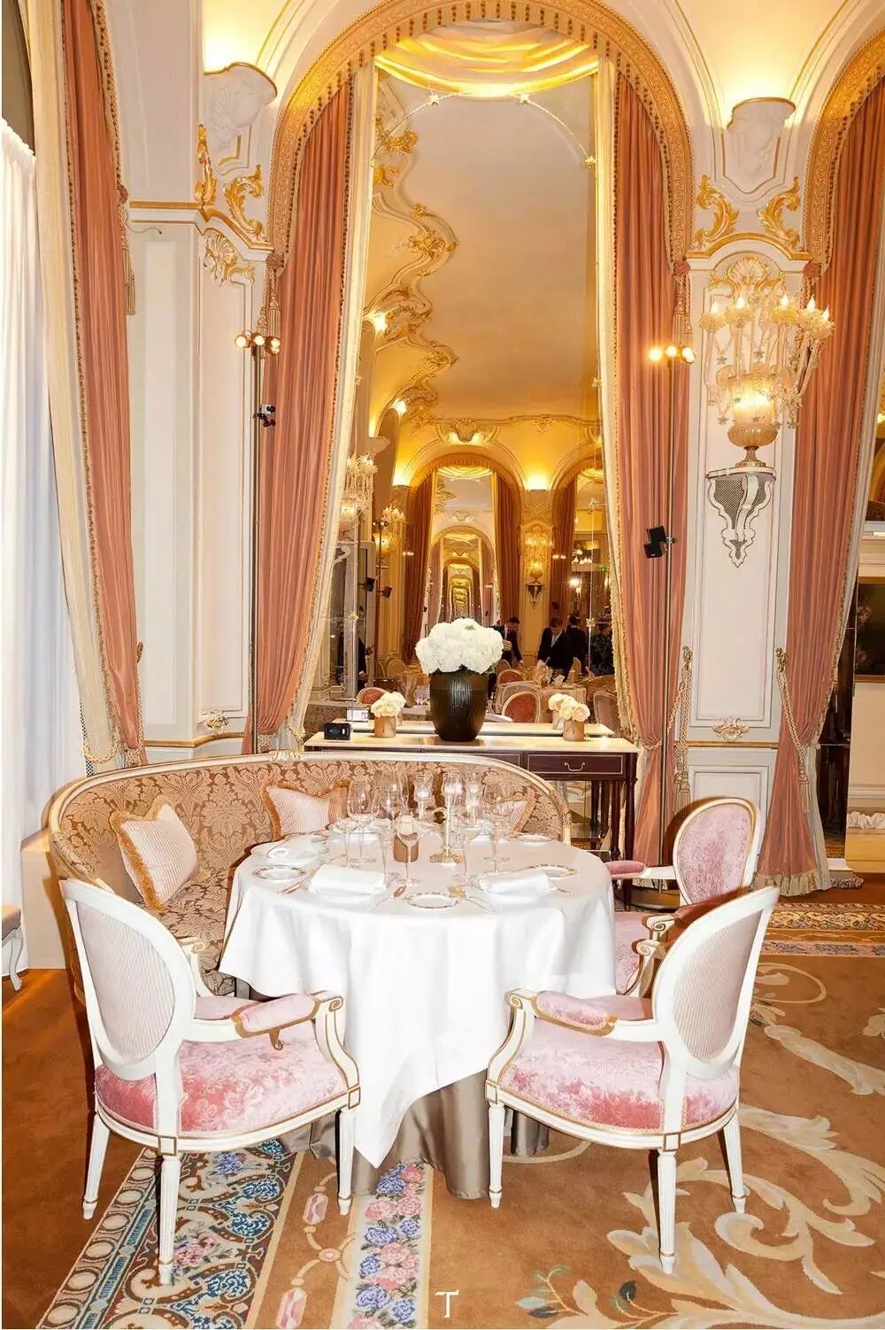 Chanel 高级手工坊系列的时装秀占据了巴黎丽兹酒店好几处不同的公共空间。图中粉红配色的房间是名为 L’Espadon (剑鱼)的餐厅,以纪念作家海明威的小说《老人与海》。