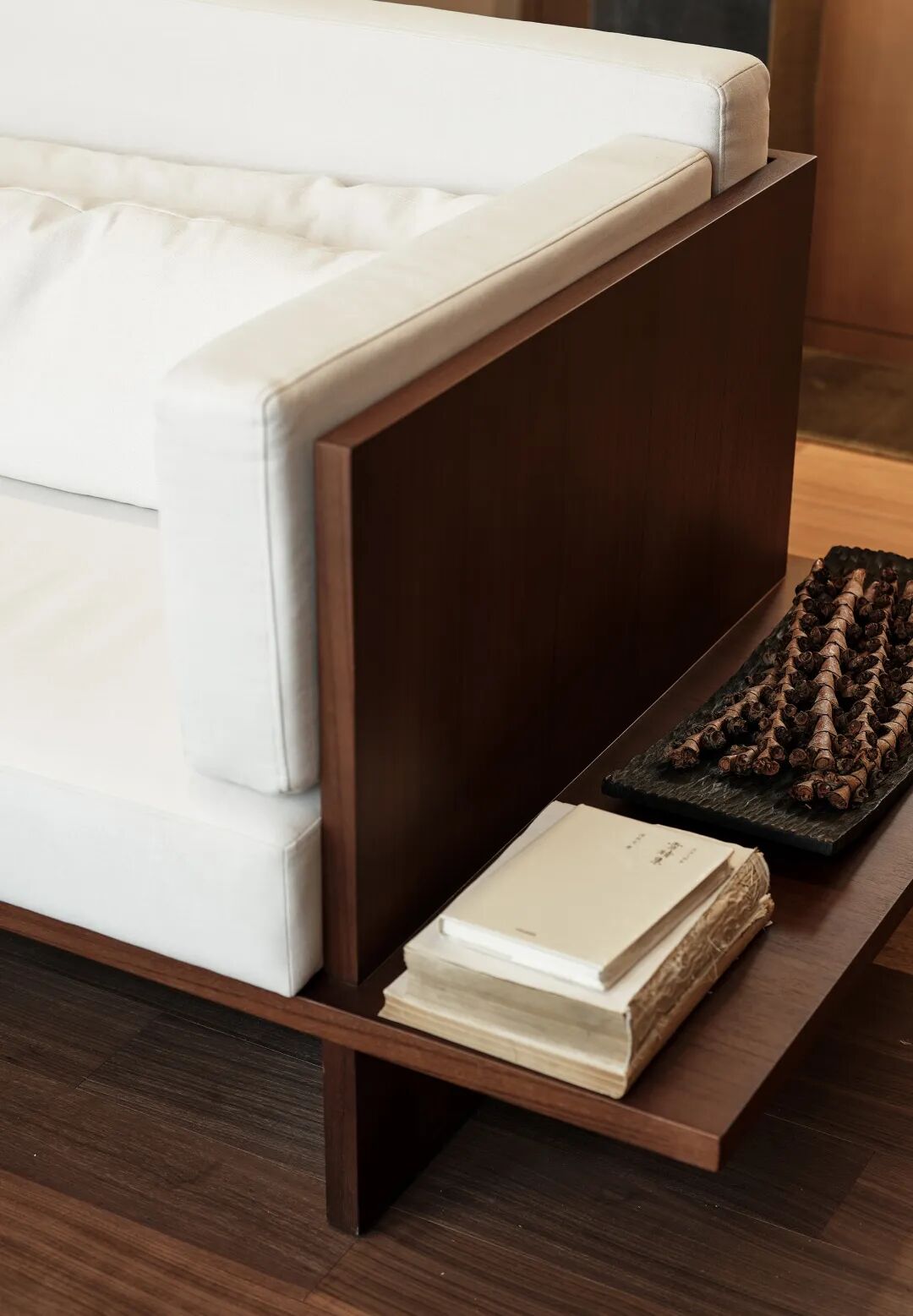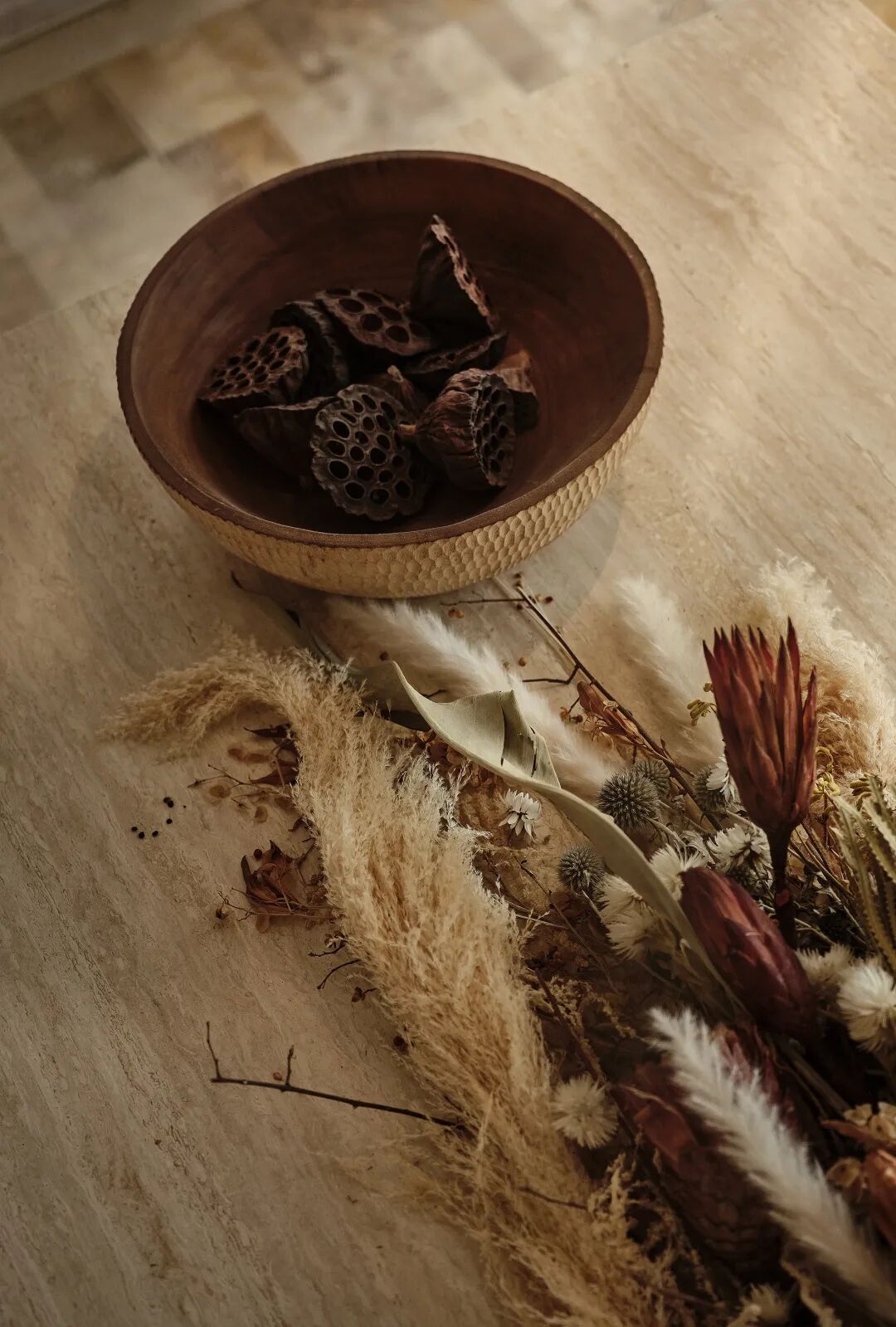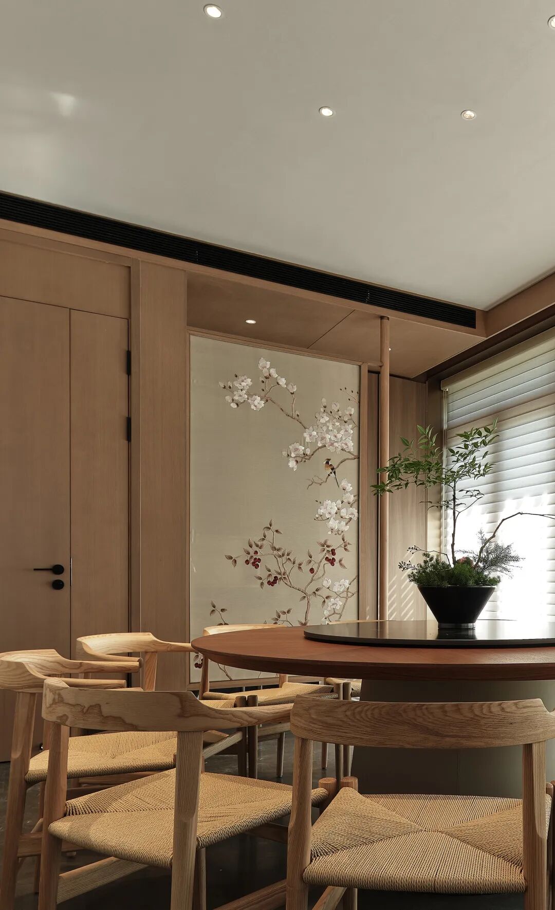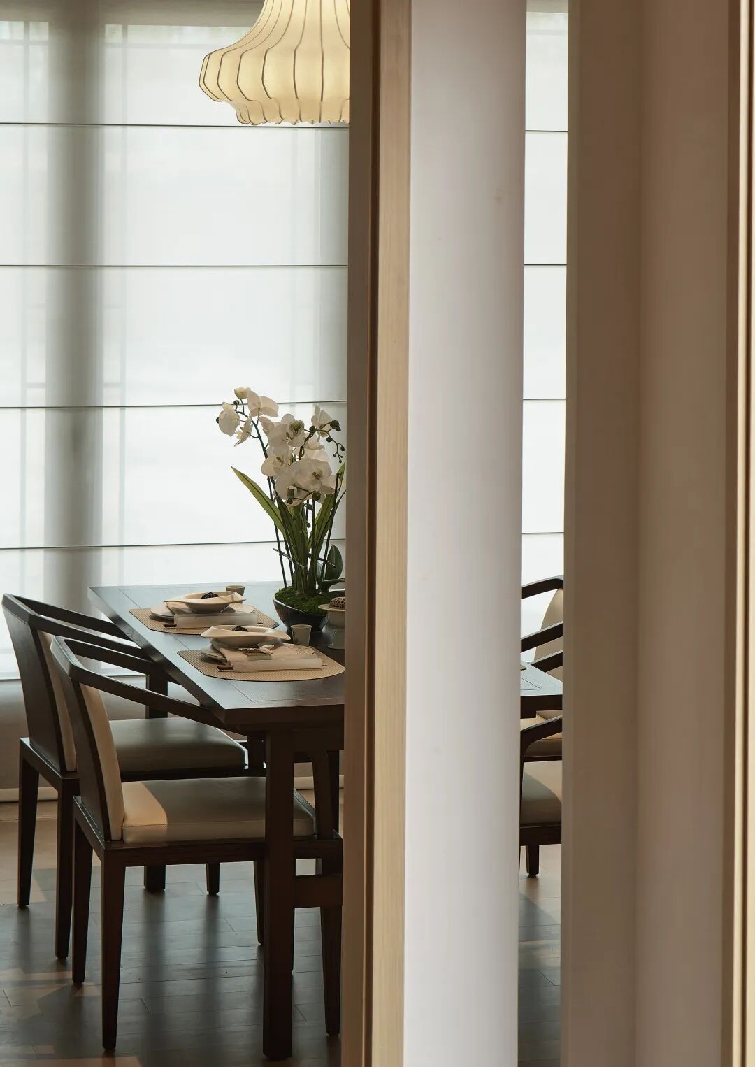 精致的器皿里蕴含着使用者在生活中所追求的仪式感,在入口软装的选型上,融入了一些自然意向,结合矮凳和条桌的选型,放大了空间的禅意氛围,并增加了人们在此处发生交流的可能性。