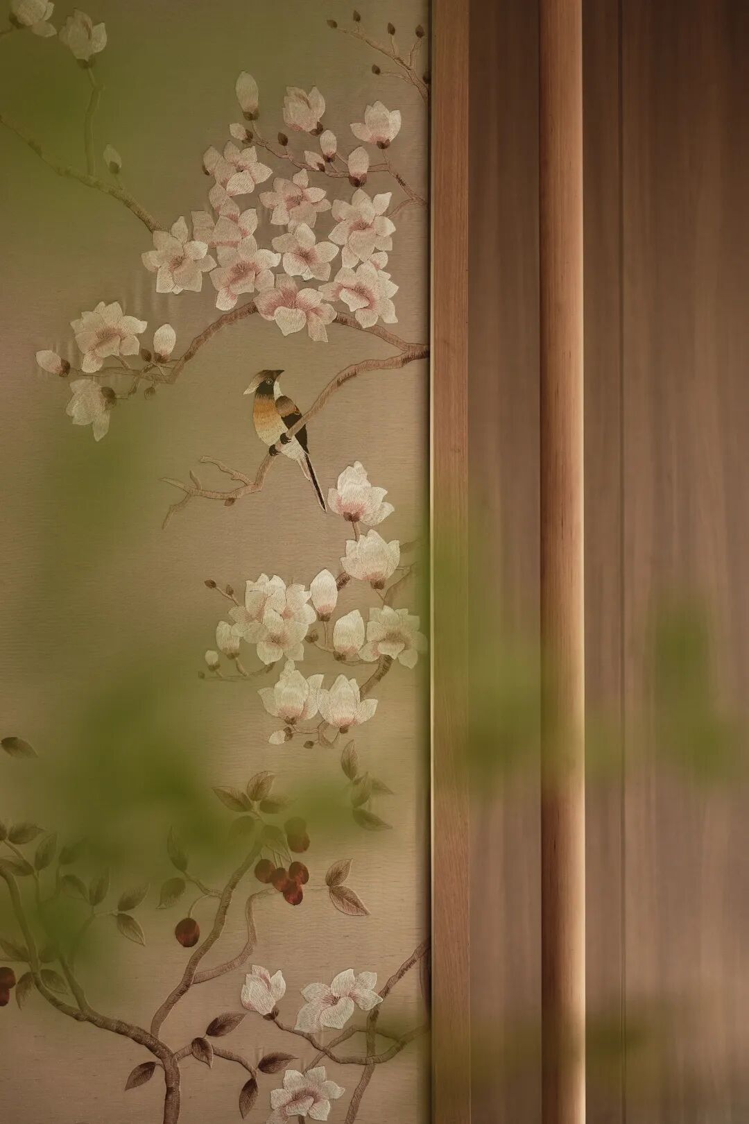 茶 - 社交客厅。中国人讲以茶会友,饮茶是传统文人墨客交流和休憩时的主要活动。作为休息、社交、过渡的空间,社交客厅区域以中式禅意的工笔画为初始意向,整体设计风格典雅幽静,实现意识精神层面的闲适与安逸。