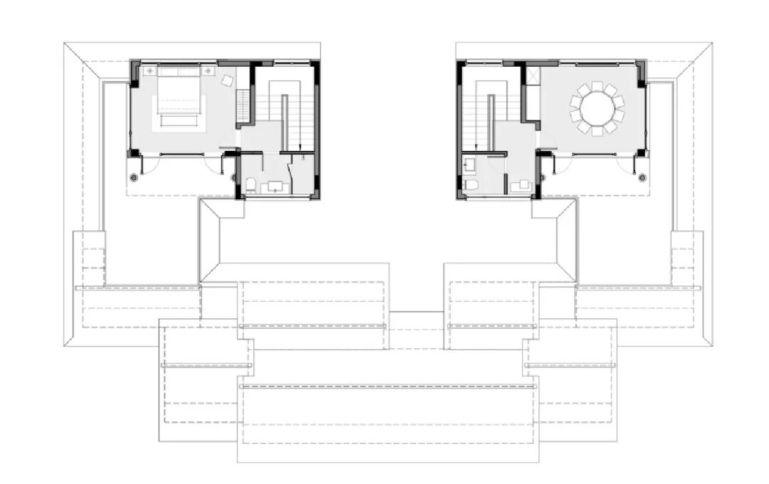 不论是室内还是室外,都尽可能与自然景观有更多直接的接触,将中国古代对于私密与自然这一主题进行了现代化的解读,也诠释了设计者在“将自然元素融合进最偏向私域的空间”这一命题上面的考量。