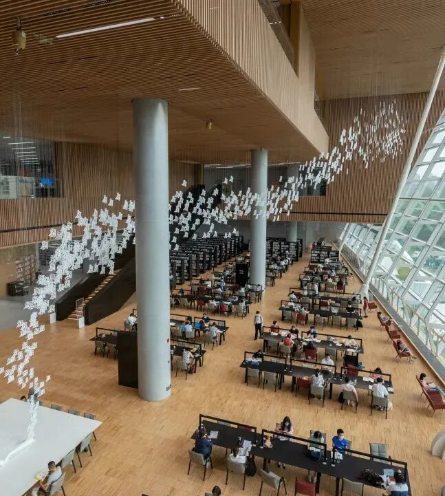 上海图书馆东馆目标成为激扬智慧、交流创新、共享包容的“知识交流共同体”。开馆后,图书馆80%的空间将开放给读者,充分体现“以人为本、开放、灵活、包容、可互动”的核心设计理念。