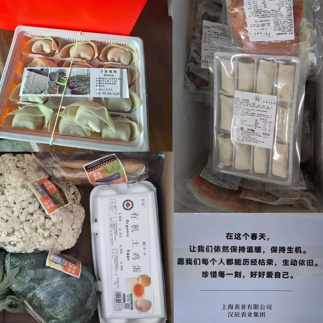 在封控中,我先后收到了腕表品牌罗杰杜彼送的馄饨,朗格送的预制菜,中国化妆品公司伽蓝集团送来的蔬菜和护肤品,以及上海表业递送的水饺、汤圆、粽子。