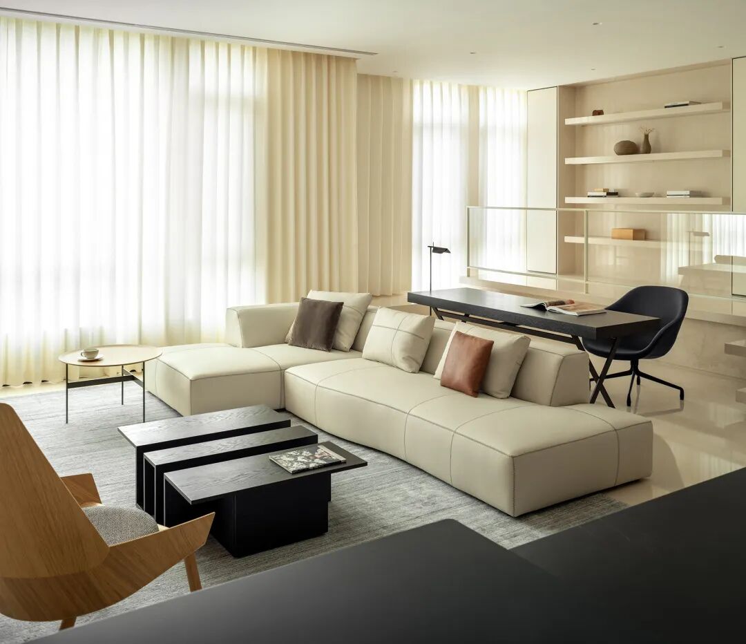起笔于全方位的开放互联,自由温暖的主张贯穿全局。厘清空间逻辑及多重关系,探寻各分区的自在渗透,以灵活的洄游动线、“空”与“简”的面貌将多个生活场景串联起来。垂帘摇曳,柔和的日光洒入,将整体氛围烘托的愈发迷人。