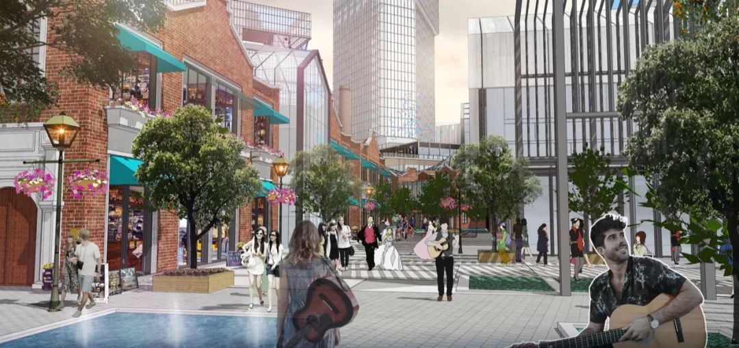 为了留存与善用这浓浓的市井气息,FTA摒弃了大拆大建的传统城市更新思路。延续虹口里弄的历史肌理,多样化配套规划,打造全天候的艺术休闲社区。南北向哈尔滨路风情商业街道、东西向滨河商业街道设施升级、管线入地、界面整治、露天业态等多种街道景观治理措施营造文化氛围,将更多的步行空间让给游客与居民。