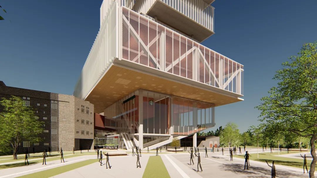 为补足原音乐谷所欠缺的产业发展示范动能,我们提出新增产业综合体办公塔楼,借此引入数字音乐龙头企业。具有韵律及节奏感的音乐“垂直社区”满足完整音乐制作产业链需求,将各种功能设置于建筑之中,更打造多层次、体验空间丰富的绿色生态办公环境提升楼宇的形象和品质。