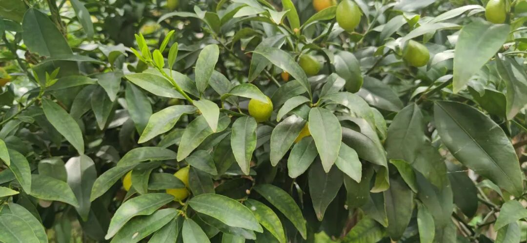 原来,金桔树上已经结了不少果子,