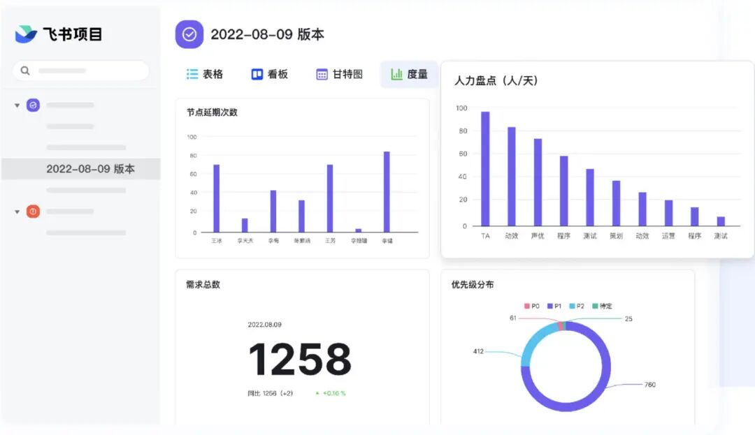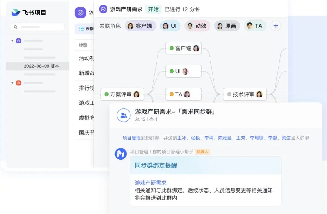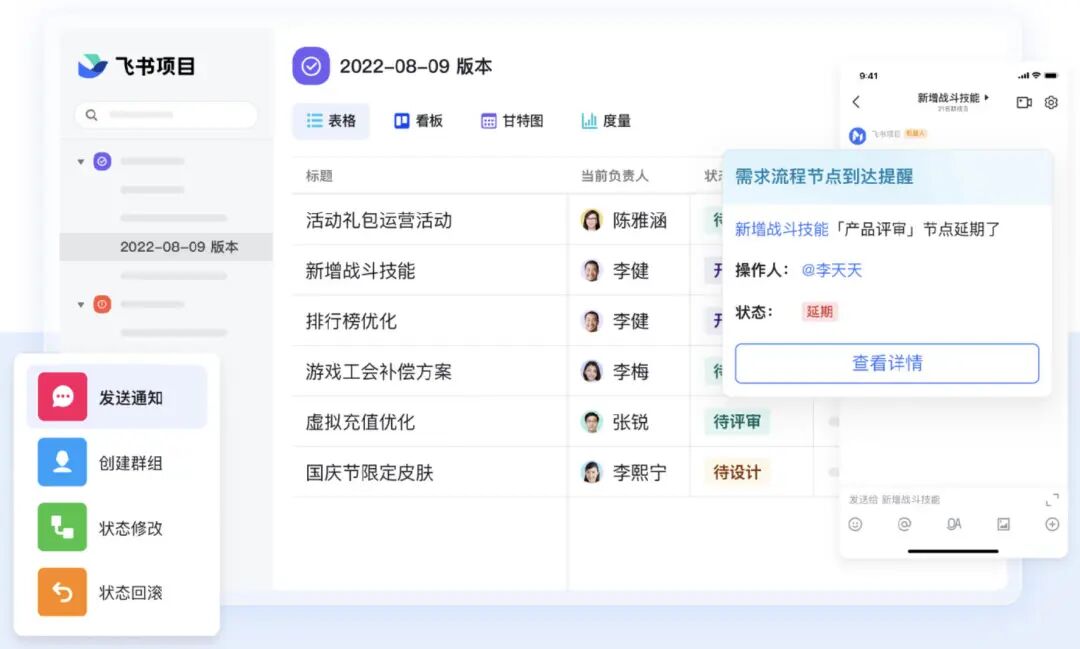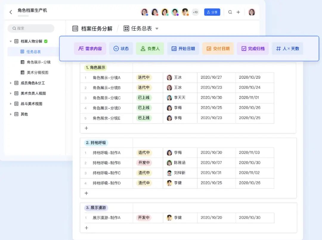 而飞书的意义,则在于不同岗位的游戏人,都可以通过它来提升效率。比如制作人可以通过列表视图,查看精细到交付物项目进度,看到项目卡在哪儿,负责人是谁,人力资源又在如何分配。