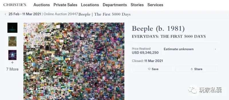 美国的数字艺术家毕普(Beeple),从2007年开始每天画一幅素描,在画了5000天之后,将它们合并成NFT画作《Everydays: The First 5000 Days》,在佳士得拍卖会创下了6930万美元的惊人纪录,比莫奈的名画《睡莲》还高出1500万美元。