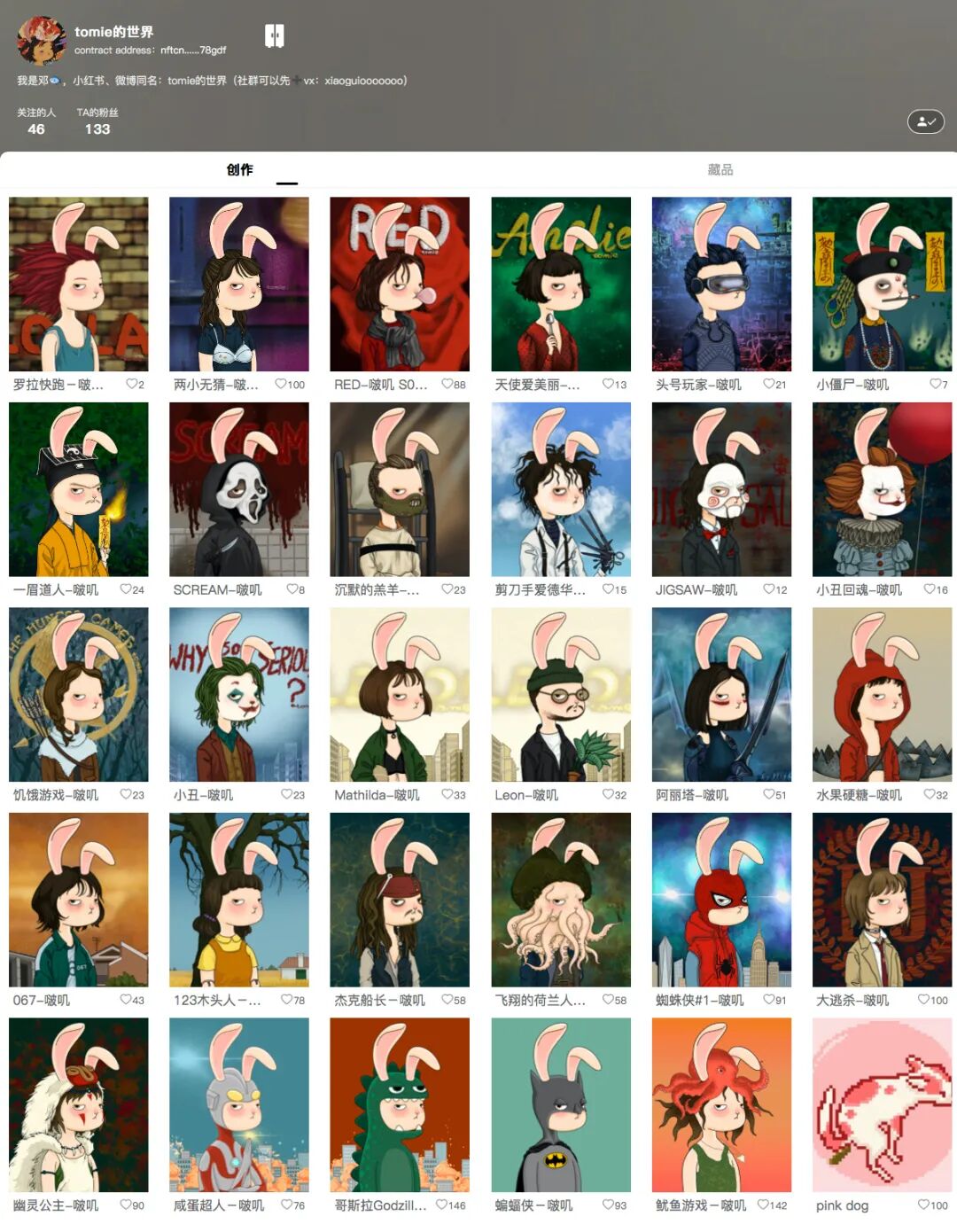 在这之前,我们把它和单纯的区块链混淆了。想着不就是网上下载一张JPG的事吗?之后有几家大型艺术机构找到我跟我谈NFT的事,那段时间我也闹不清这NFT到底是什么。接着就到处找资料研究学习,除了海外的OpenSea,又找了很多国内平台。直到11月底找到现所在的这个平台,当时看平台网页注册用户已经有60万人。一开始也不懂规则,就尝试放了三张早期原画,结果一个星期连一个浏览量都没有。