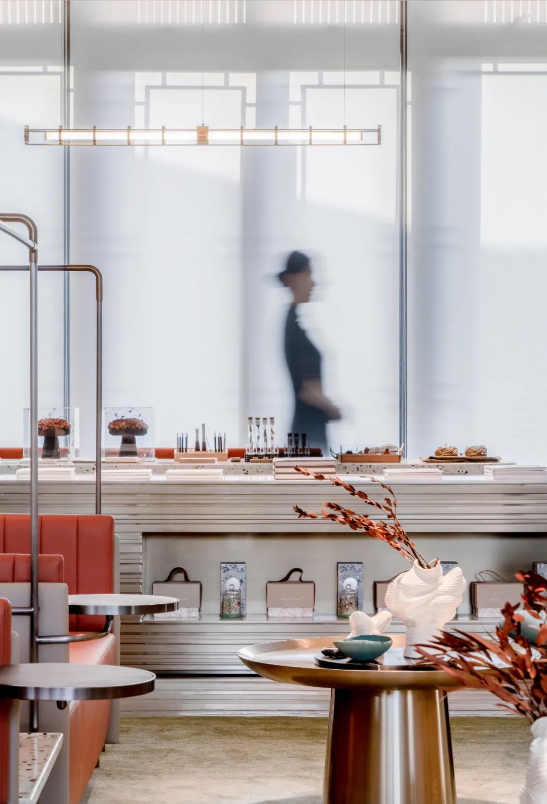 低饱和度的檀色、结绿、尺璋等中国传统色,与精工细作、简约唯美的都市感相融合,自然而不生硬。