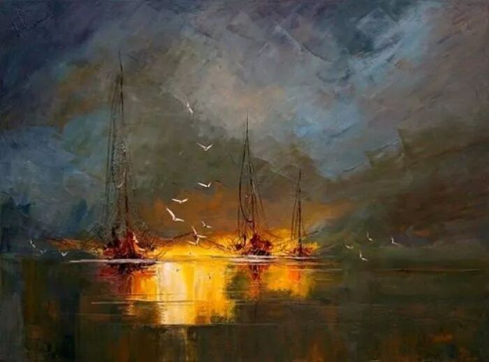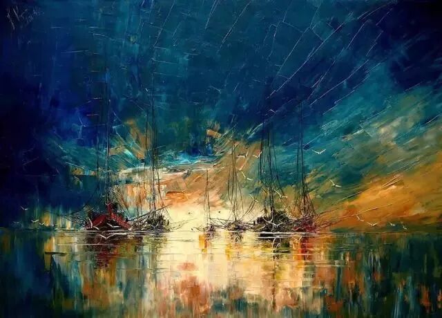 调色刀厚涂的天空、