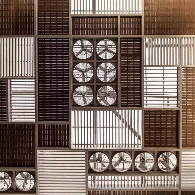 建筑的屋顶设置了一组工业级的排气扇来大大加速热空气排出这一过程。