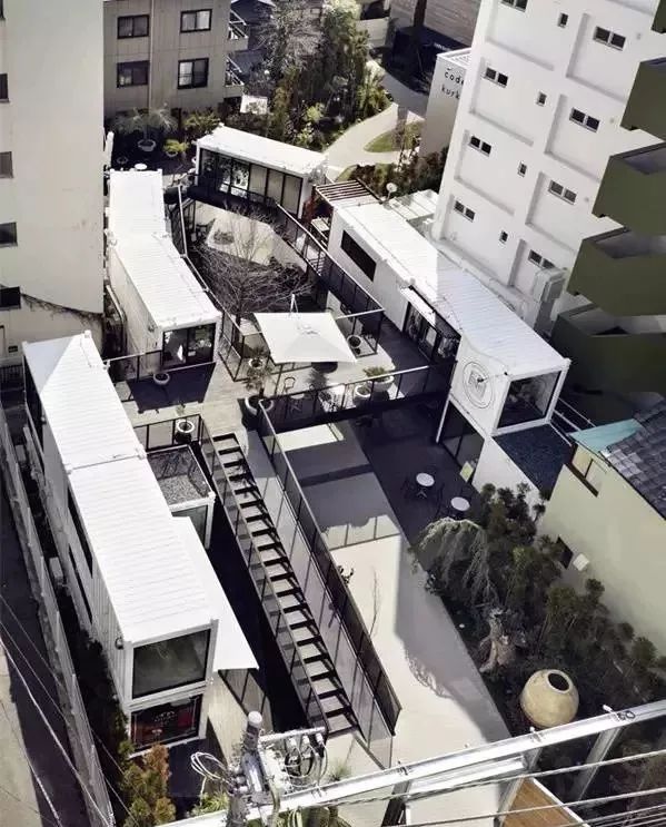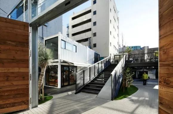 每个空间利用船运集装箱进行商业区域维和、回旋簇拥着庭园步道。