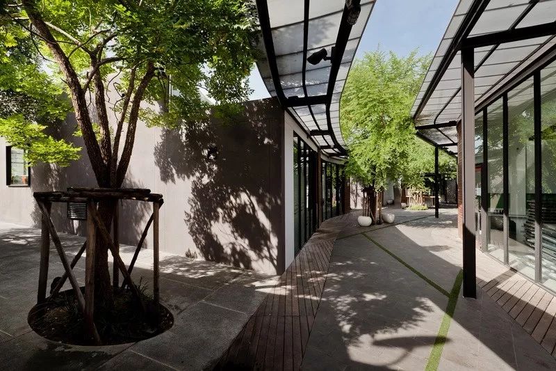 场地内的现存树木保存完好,与周边设施一起构成了场地的主要用餐区。