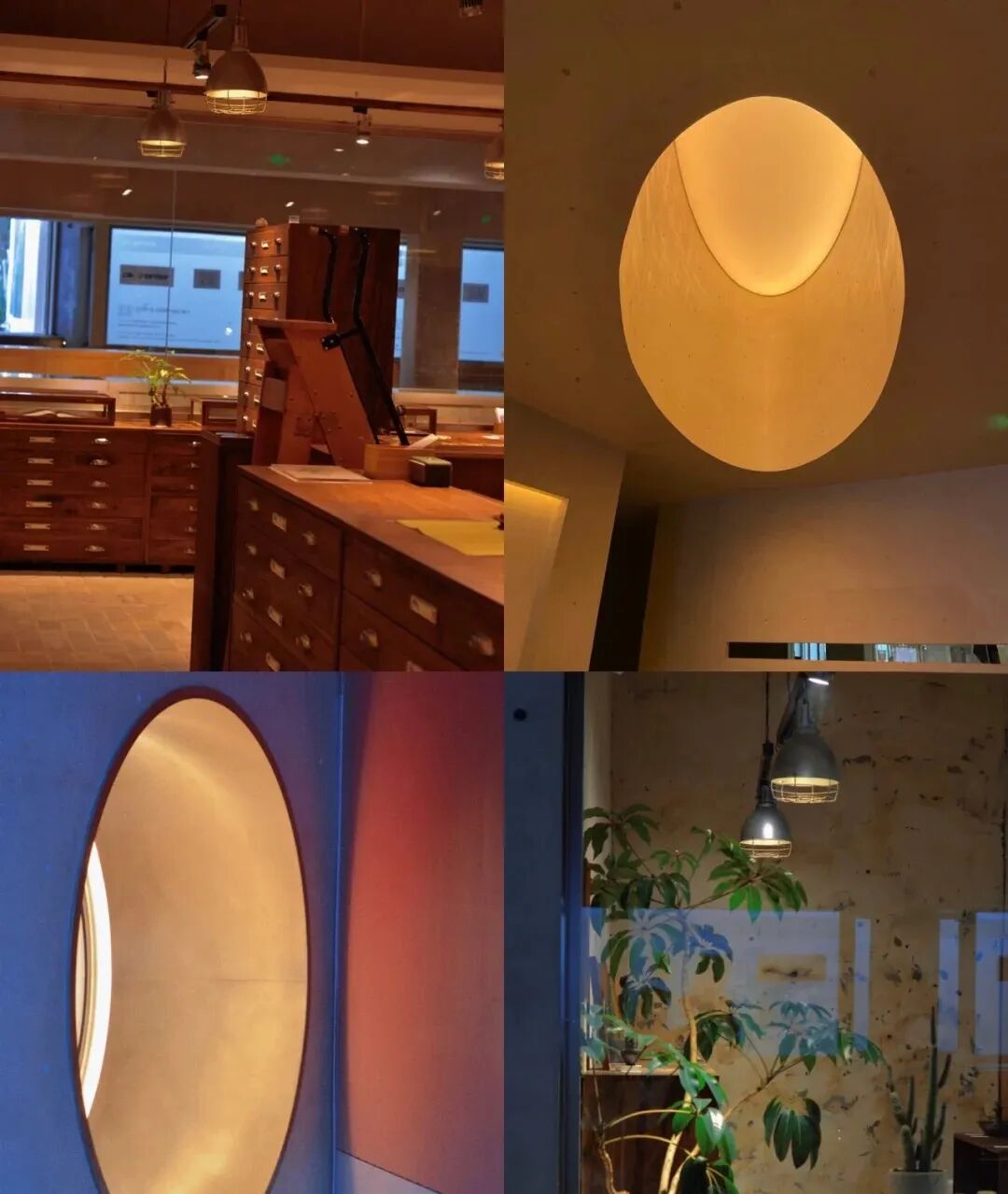 在这个空间中,最让人印象深刻的是灯饰天井的设计,橙黄灯光与淡灰色相面交相辉映,简单又自然,原始却有序。
