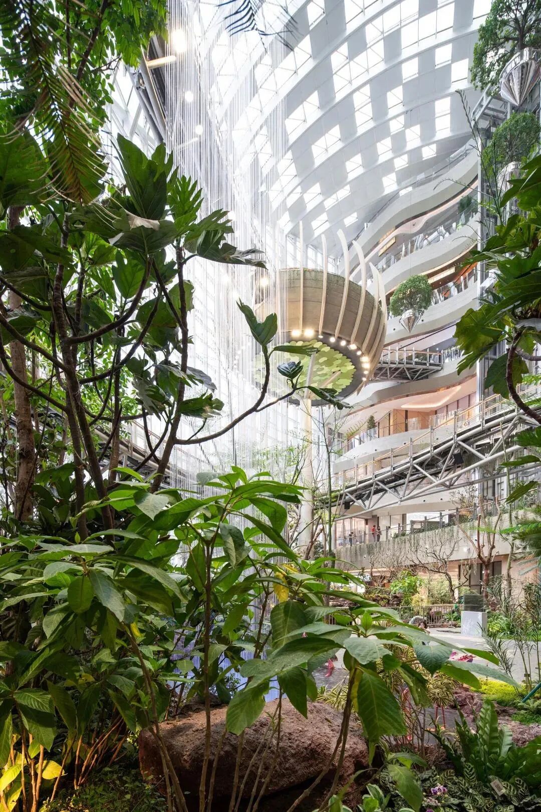 以国内首个“城市自然共同体”为设计理念,重庆光环在商业空间的设计上可谓是下足了功夫!将纵跨七层高达48米的大尺度室内植物园--沐光森林引入商场,创造一个非凡的体验空间。一季一景、结合潺潺流水,游客就像置身于原始森林,自然景观尽收眼底。