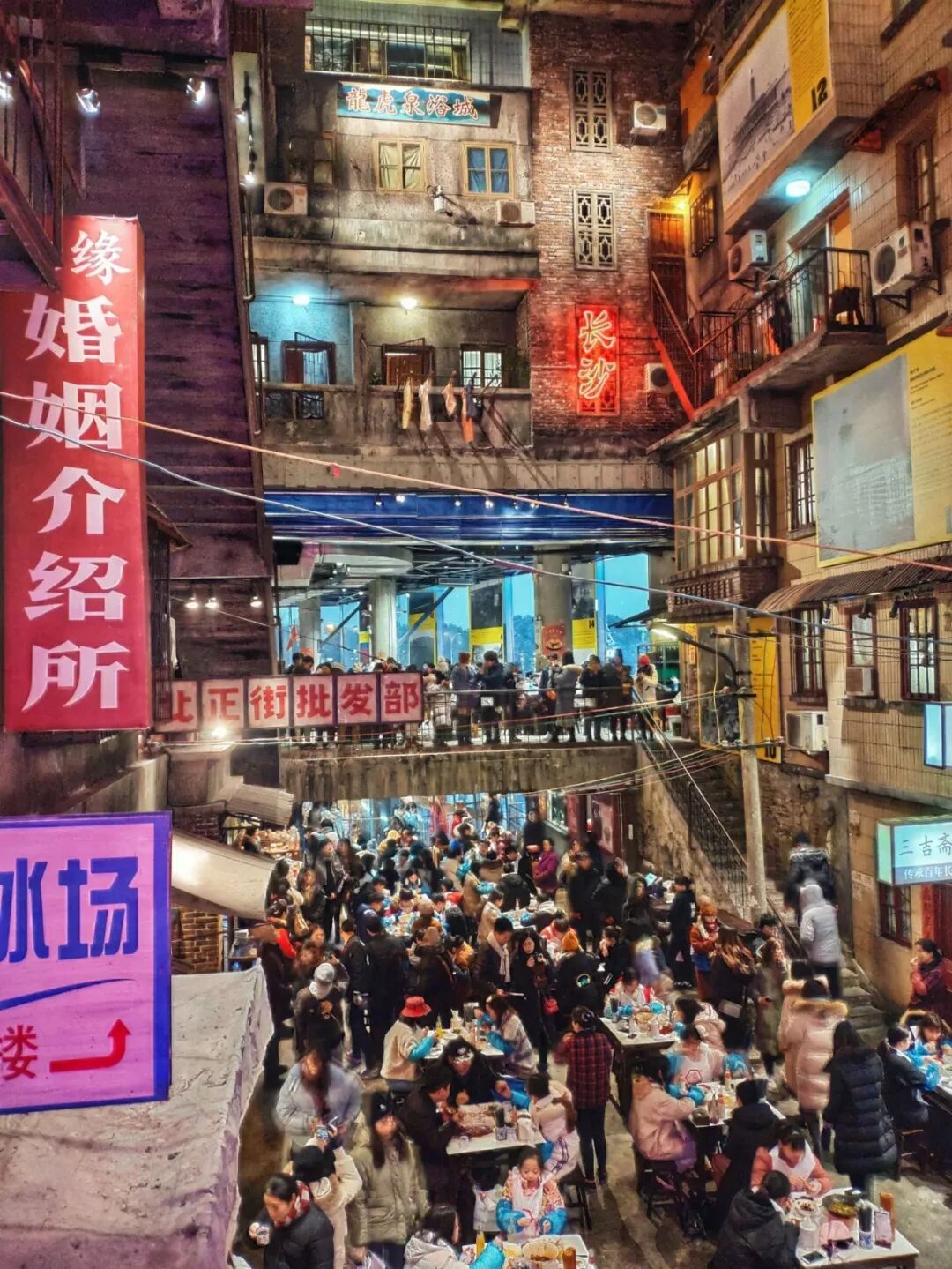 文和友品牌核心竞争力就是主题式的怀旧设计,这是长沙八九十年代的模样,老巷子、歌舞厅、婚姻介绍所、洗头坊、苍蝇餐馆、洗浴城、溜冰场......空间内遍及了各种各样“老长沙”风的元素。