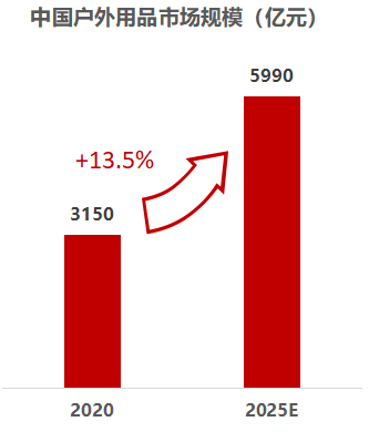根据公开数据显示,2020年我国户外用品市场规模达3150亿元,2025年预计达到5990亿元。2022年618大促,京东开门红10分钟的时间段内,户外露营产品成交额同比+210%。在年轻人户外社交运动的新场景下,户外用品的消费需求趋于多元,消费市场广阔。