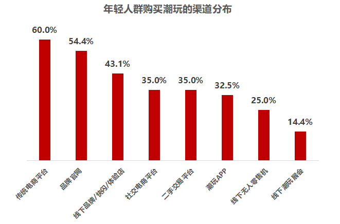 从购买渠道上来看,00后除了通过传统电商渠道直接满足所需外,也喜欢线下逛店、看展体验沉浸式“淘玩”的快感;90后会在微信、抖音、小红书平台“混圈”、在二手平台上换娃,或线下挑战抓娃娃收获所爱;80后喜爱在淘宝、京东逛品牌旗舰店,或通过潮玩APP、线下潮玩展等垂直渠道进行下单、消费。