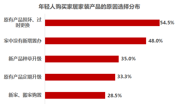 必要的产品更替和需求新增是年轻用户购买家居家装产品的主因