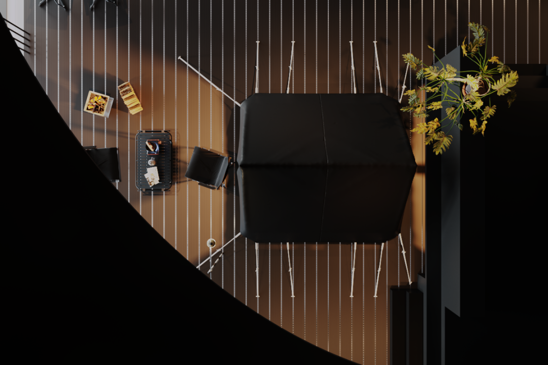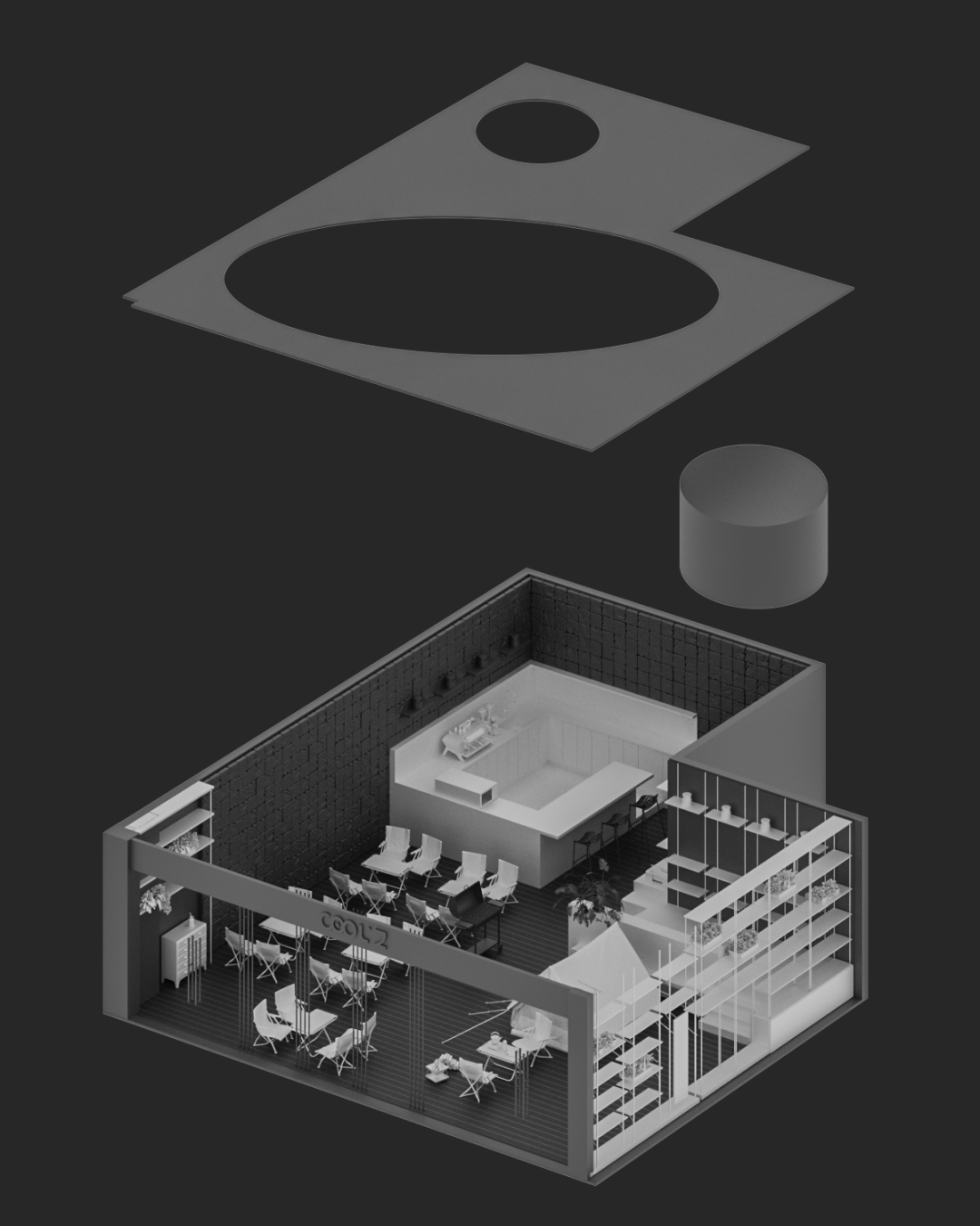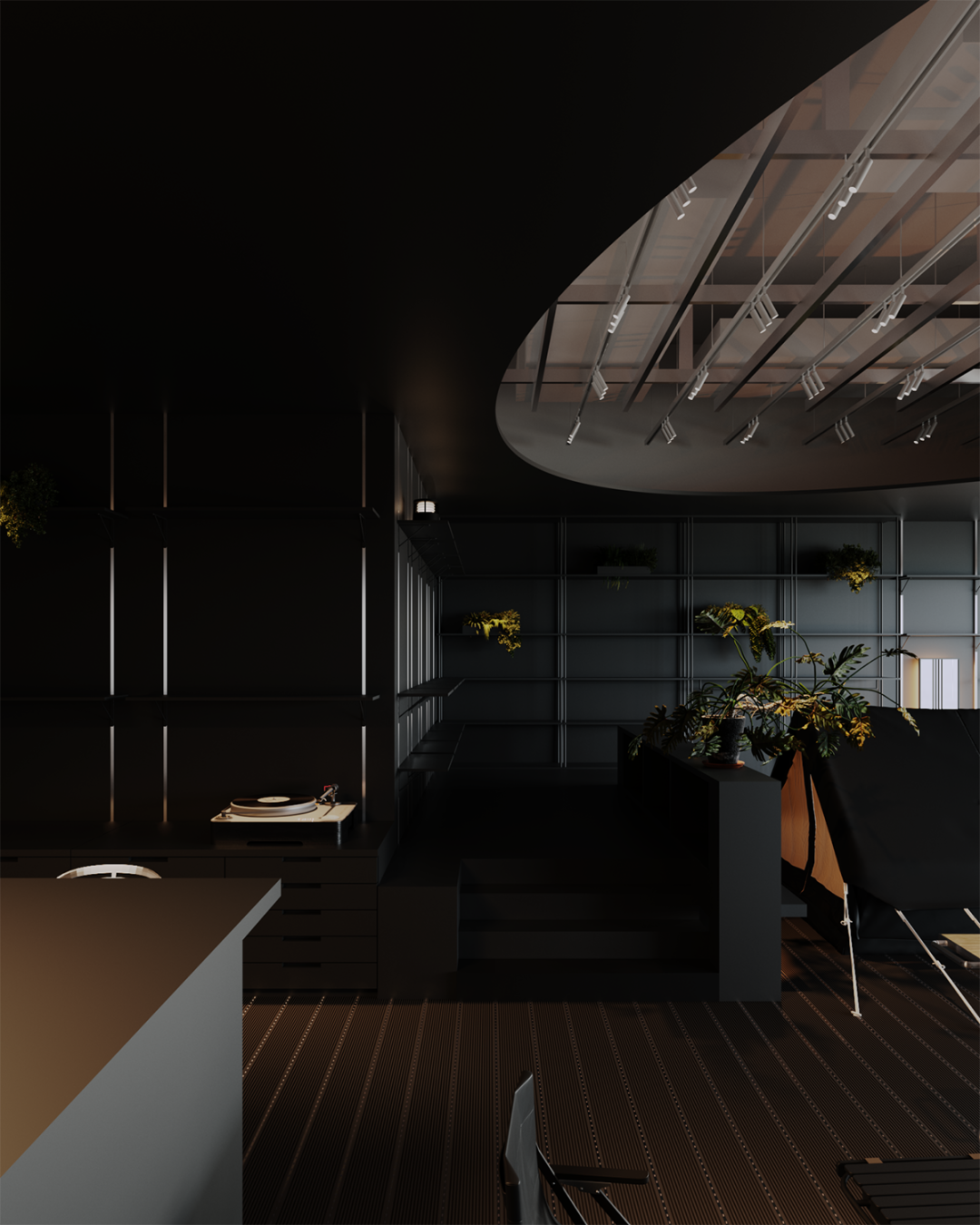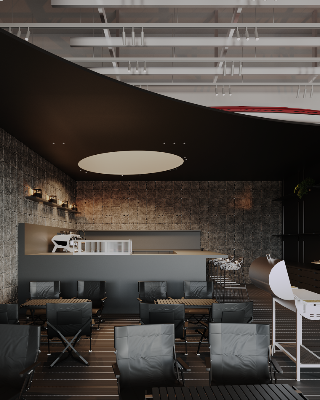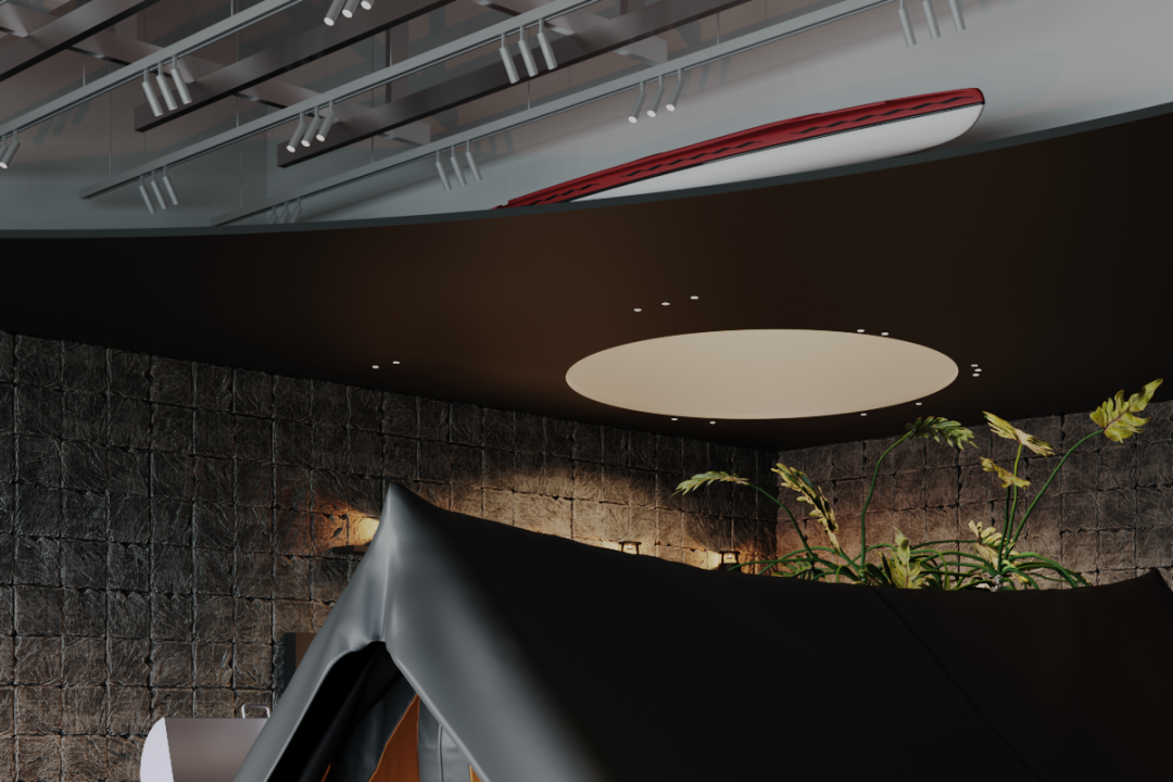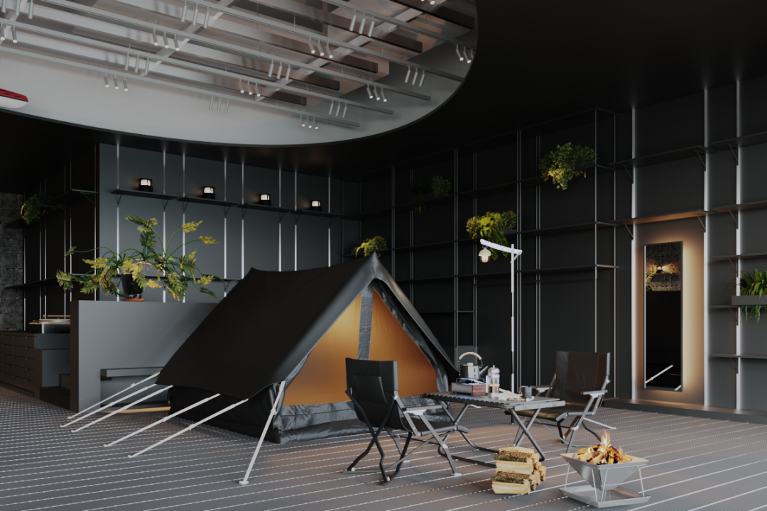 我们希望延续黑帐篷的理念,不想因当代繁冗、机械的生活压力而忽略生活的热爱,所以我们希望将黑帐篷”复刻”进空间,让各个功能区域以当代的形式重现。