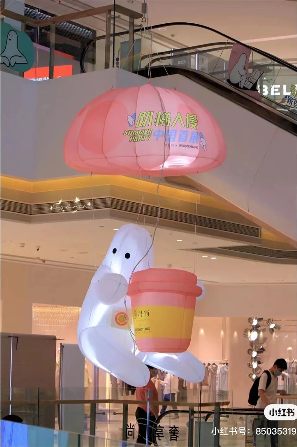 即日至10月7日,MR.DONOTHING的趴梯乐园空降中航城君尚购物中心,可爱的MR DONOTHING以各种造型、出现在各个角落:广场上、走廊里、空中……