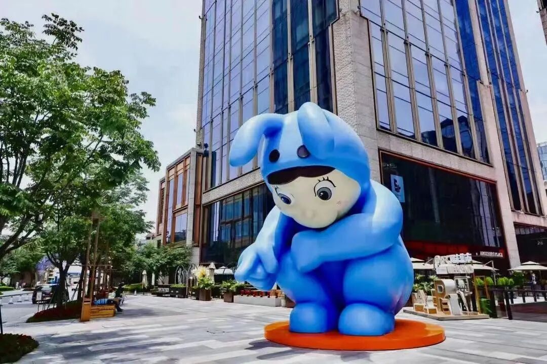 在北区户外广场,一只巨型超大的蓝色兔子醒目又吸睛,引发人们的好奇与遐想,不少市民在此打卡拍照。据介绍,这只兔子是由当代艺术家张权创作的巨型雕塑作品《KARORO》,通过作品,艺术家希望每一个身处纷扰环境中的人,都能秉持内心的真实与简单、以轻松随性的心态去面对生活、保持对美好的期待。