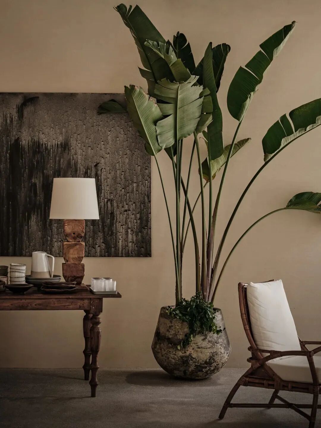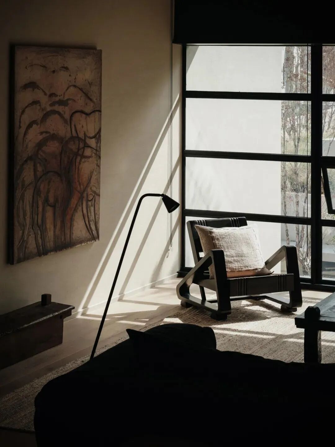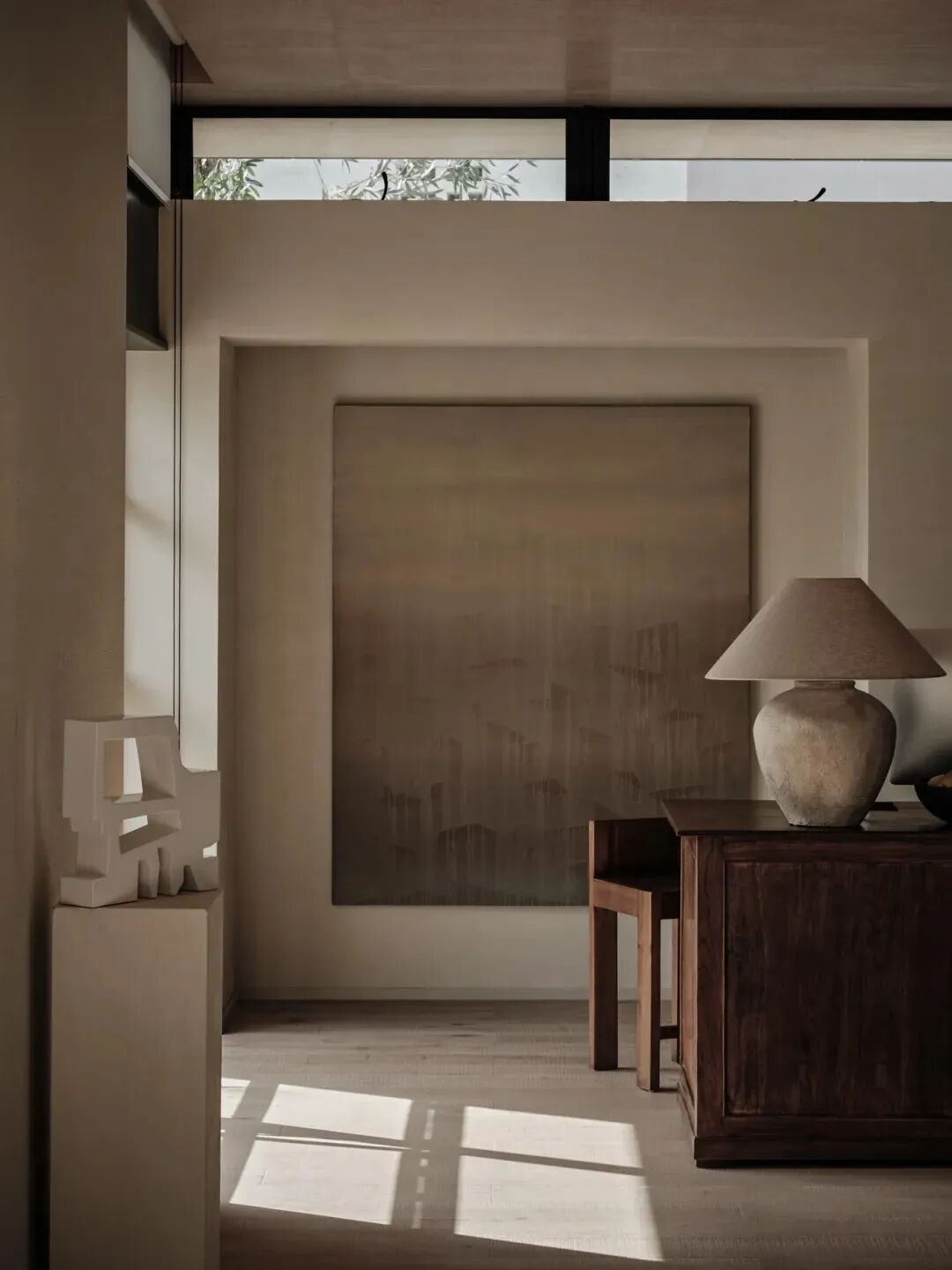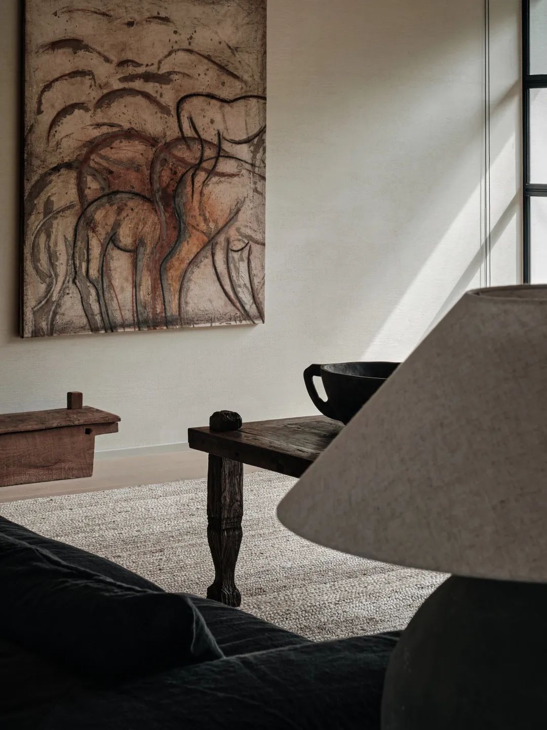 室内家具及收藏品,大多择选自壹集。古而承新,皆是有时间感的物品:天然亚麻沙发,温润的木质单椅及孤品茶几,来自于出身在非洲的抽象派艺术家Kader.Boly的画作 ... 尤爱民间的艺术,它们带有某种诙谐趣味,充满原始的生命力,那是设计师很难制作出的朴实与自在。