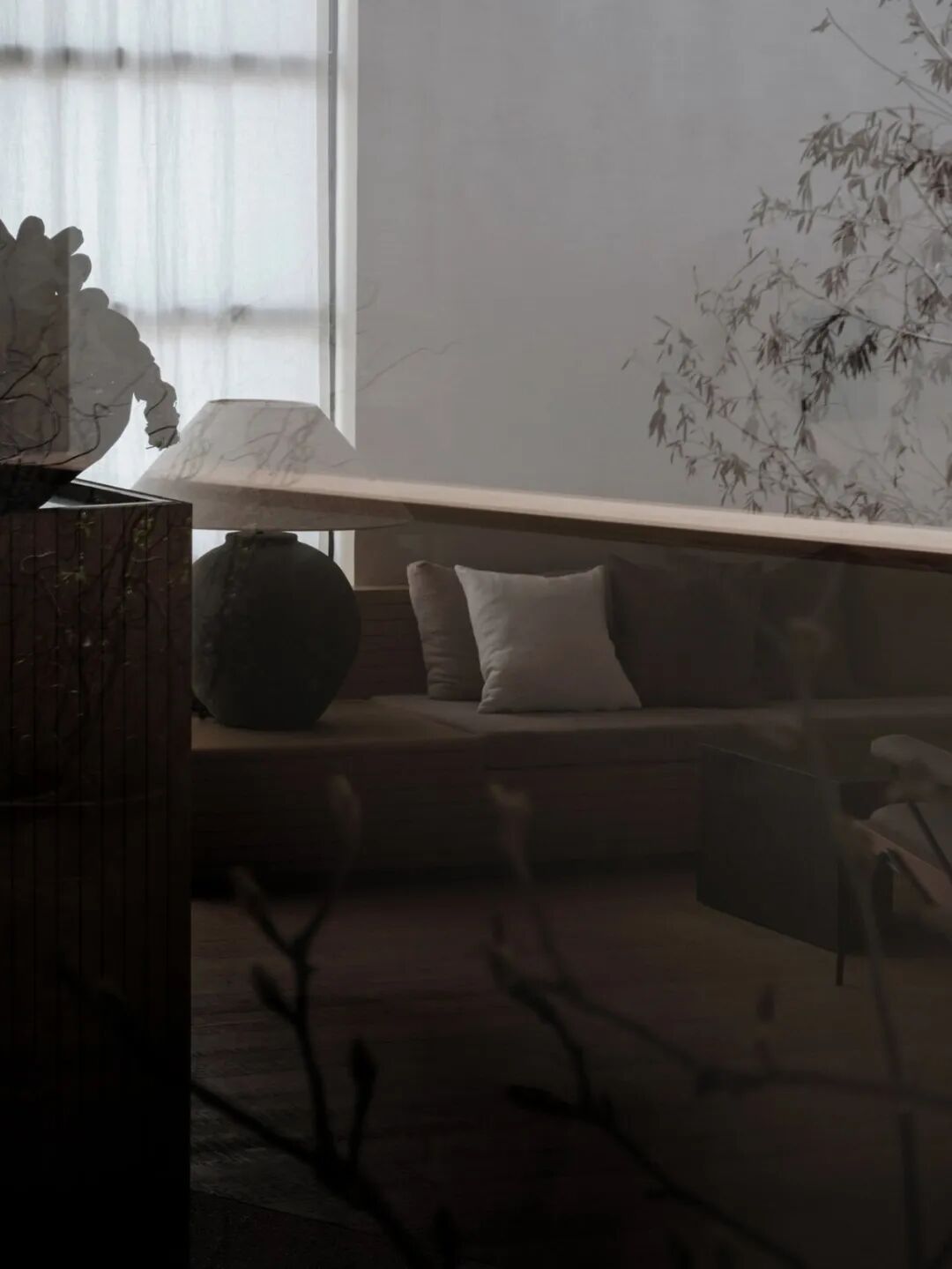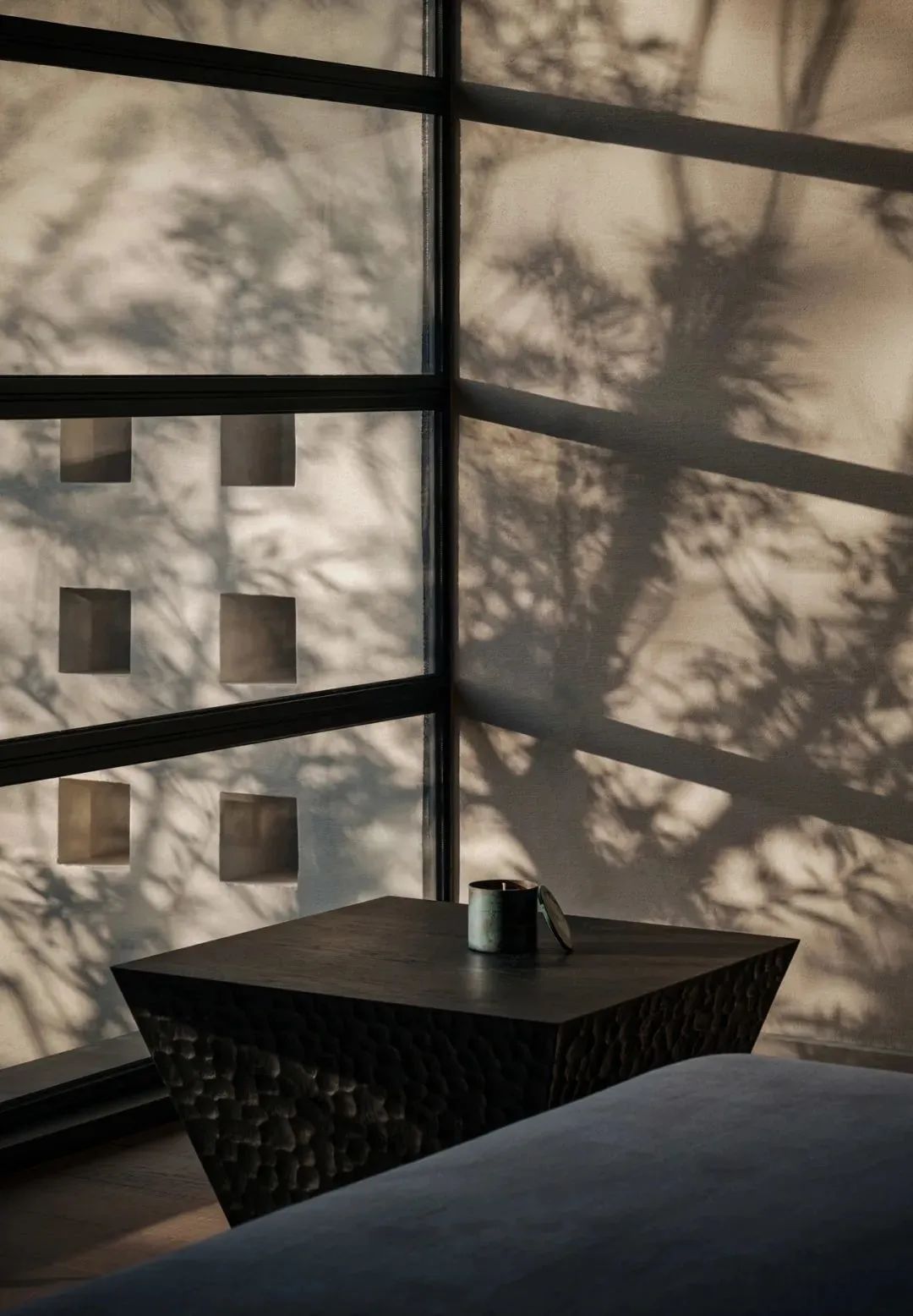 一天之中的不同时刻,我们似乎都在等待与光接触的瞬间,它神秘又有迹可循的变化让人着迷。当给予光一些约束,它便有了可能性,建筑窗户剪裁出自然景观,百叶帘切割出精致的线条,光以漫反射的方式晕染着空间。
