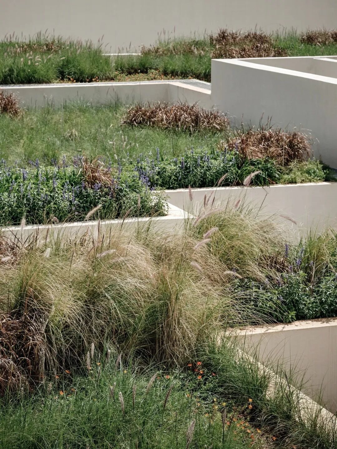 在屋顶覆土栽种不仅美观,同时也起着隔热效果,让空间始终有着舒适宜人的温度。调试建筑内外的温度是此次设计的重点,不仅是物理上的,还有心理上的温度。在这里,人的感官将优先于理念。