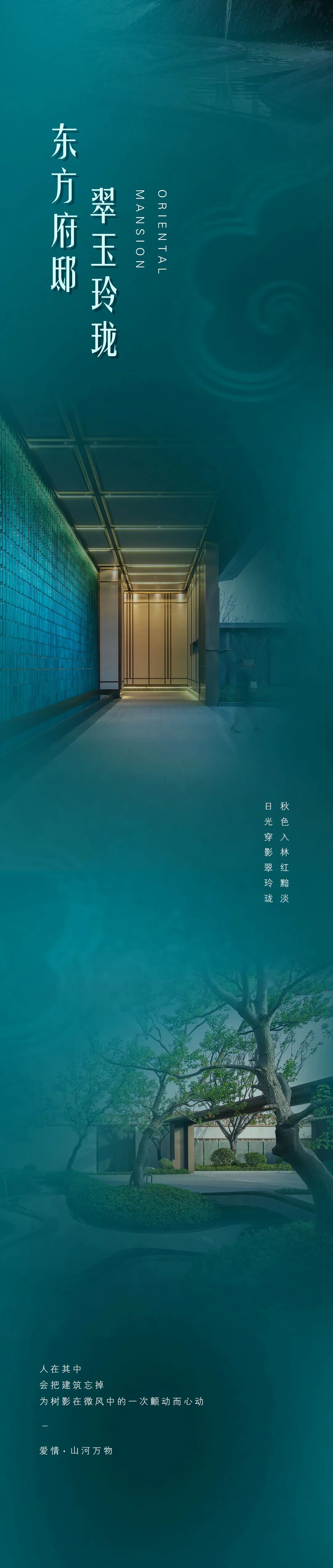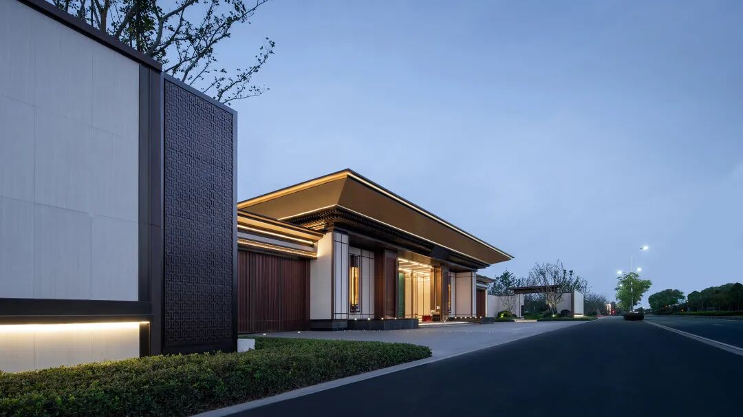 沿市政路打造超宽比例尺度展示景墙,兼顾对内的私密性和对外的展示性,营造东方大宅的尊贵仪式感。