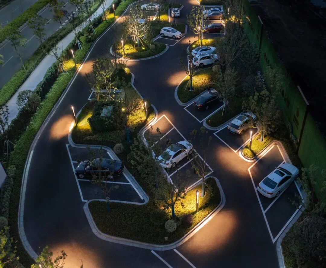独特的叶型停车场设计,如同漂浮的绿岛漫游在大地上,星光点点。为大气优雅的展示界面增添了一丝自由浪漫。