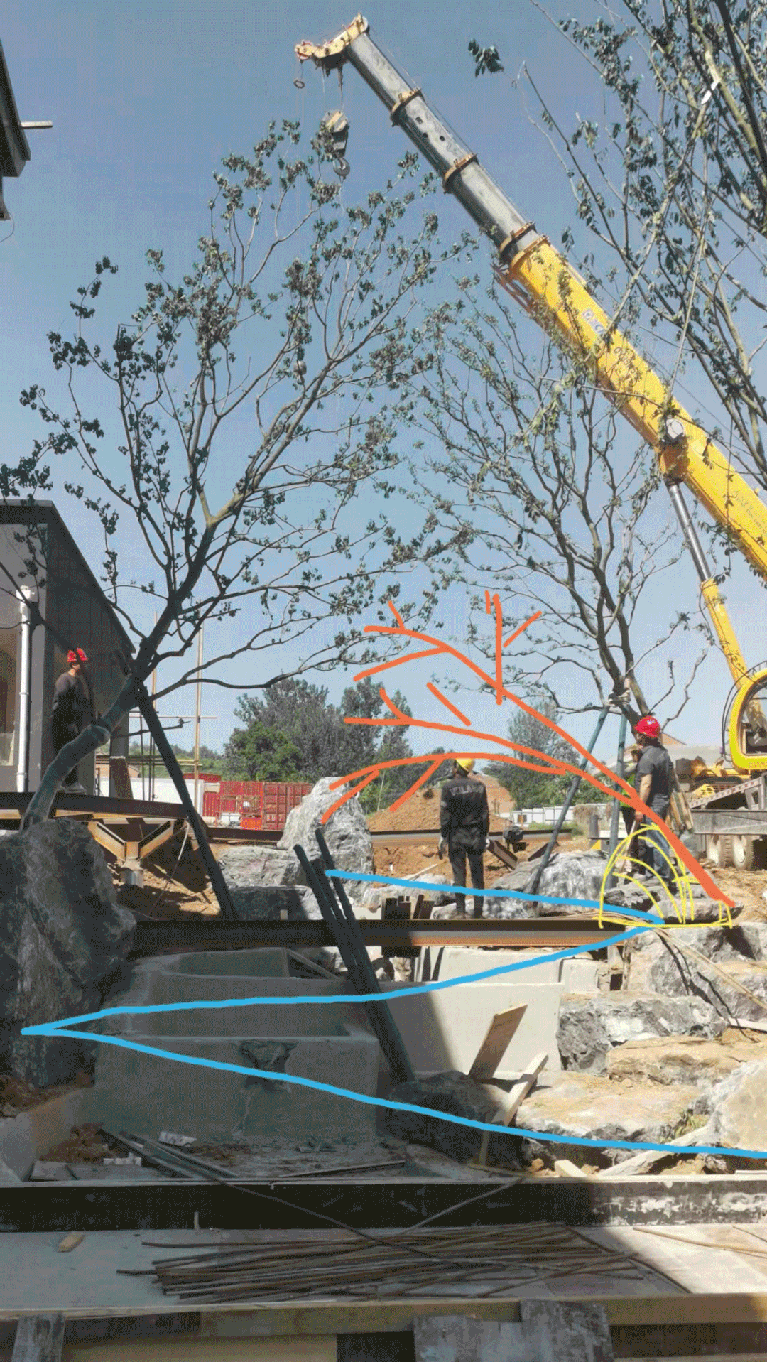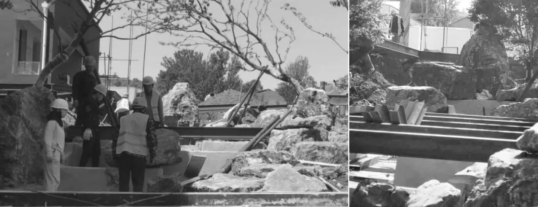 从选石就辗转几地。硕大的“石山”,精挑每一块石头。为了精准的找到每一块石头的“安身之所”,设计师已在脑中构画许久。