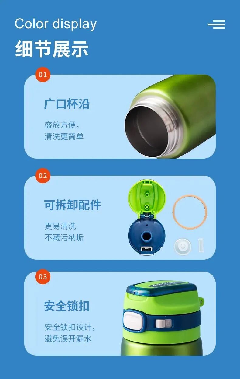 今年他家又出了新品保温杯,延续夏款的实用功能,这款保温杯依旧是,材质安全、轻便、抗摔、不漏水、时尚、而且还可以单手开盖,大人小孩都能用;