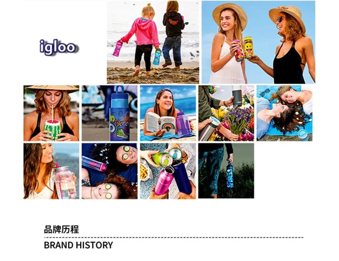 Igloo水杯来头也不小;作为在美国有着70年历史的品牌,它在美国的名字可算是家喻户晓;在全球各地拥有15000个零售店、百万英尺的生产基地,超过1000名专业团队从事户外产品的生产设计。
