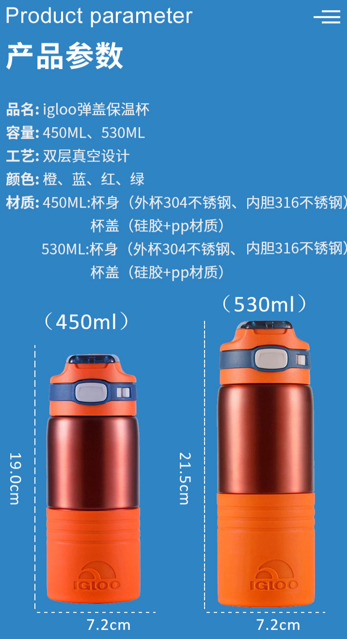 这款Igloo保温杯更是有两种容量可以选择,儿童和女生们身材娇小,选择470ML的就足够了;