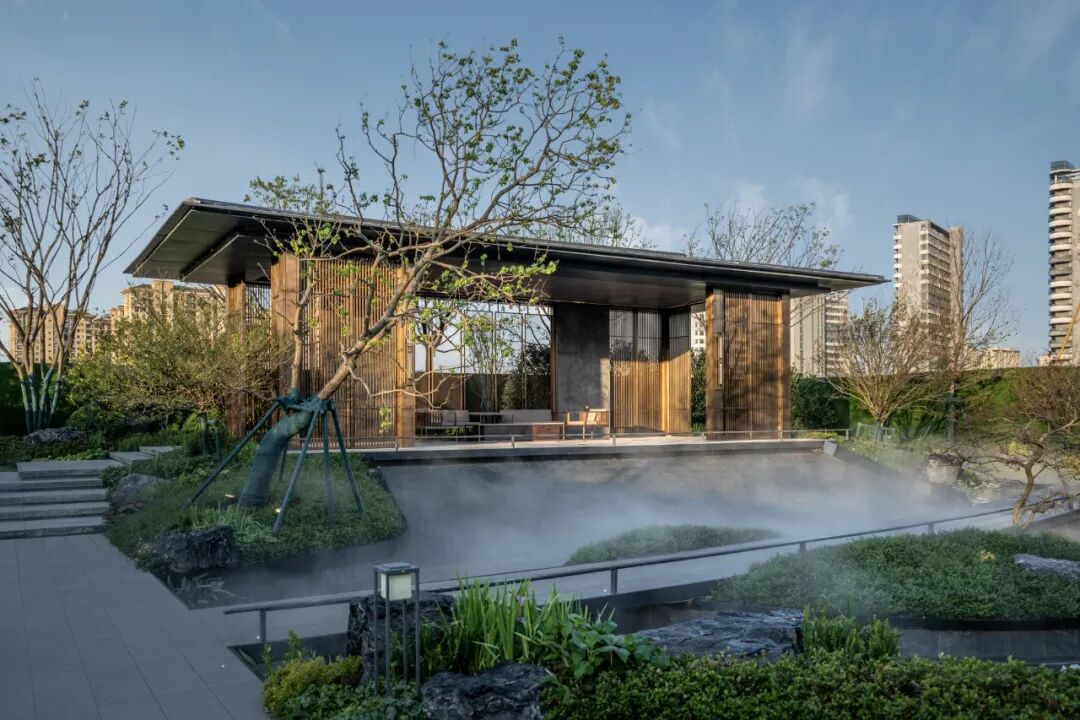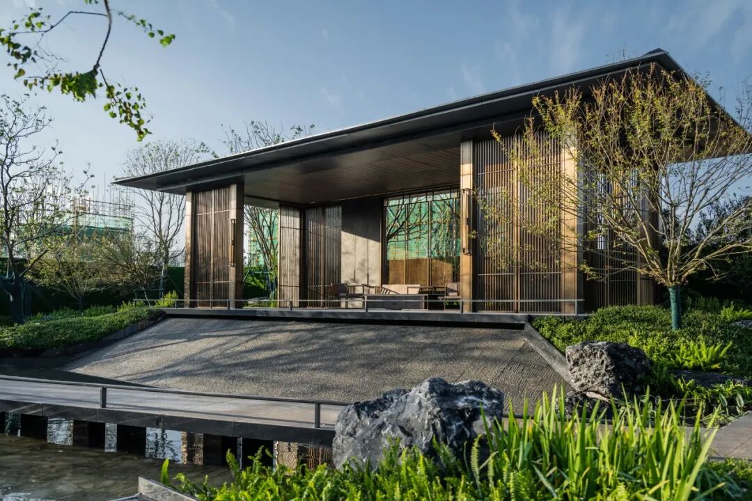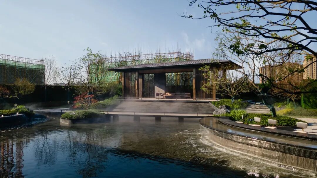 观澜云庭从诗之意、山之形、林之幽、水之韵中撷取灵感,以山水为源,提取东方威尼斯-绍兴水乡的地域元素,使人们身居闹市,兼得泛舟觅境、归林隐憩之乐。前堂后院由水贯穿,最终完成具有江南烟雨气韵的生活场域营造。