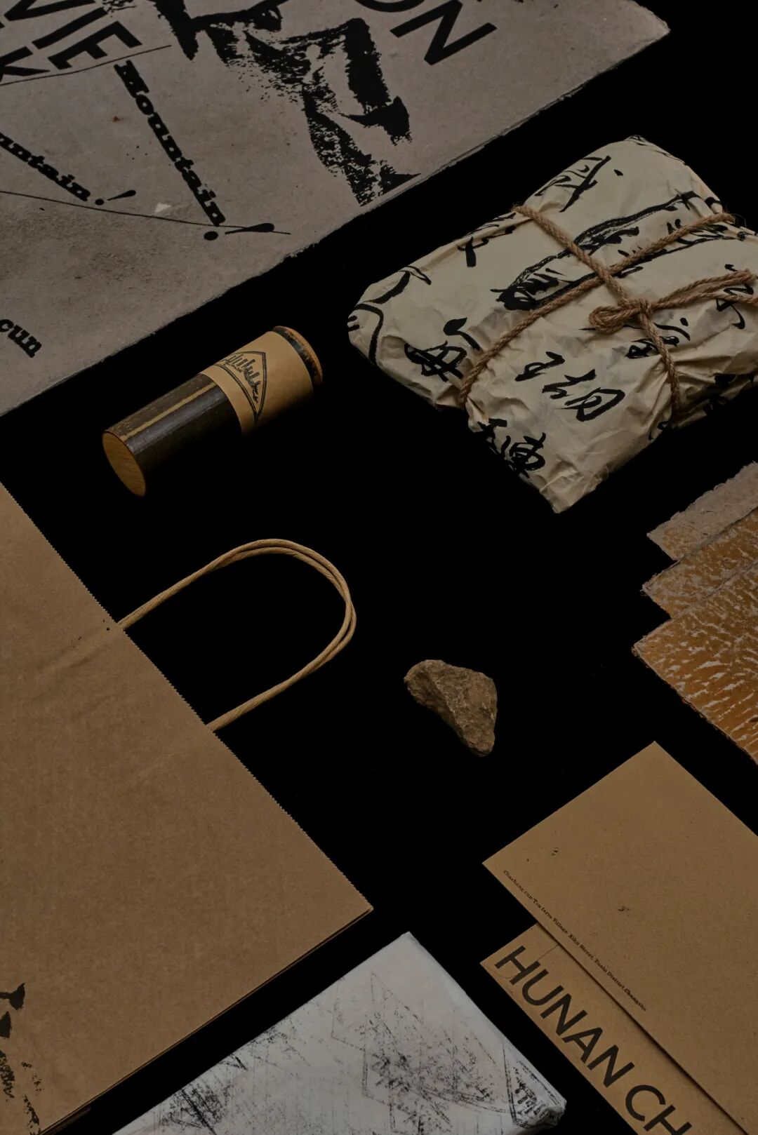 通过书法、拓印、丝网印刷我们将岳麓的山石与可再生的纸张摩擦碰撞,再现了山粗粝的肌理与不可自控的自然线条。以一种非机械,去数码化,饱含温度的手法,通过山字象形的层叠和比例的重塑,再造了空间的纵深感,引导观者向山发出新的观察。
