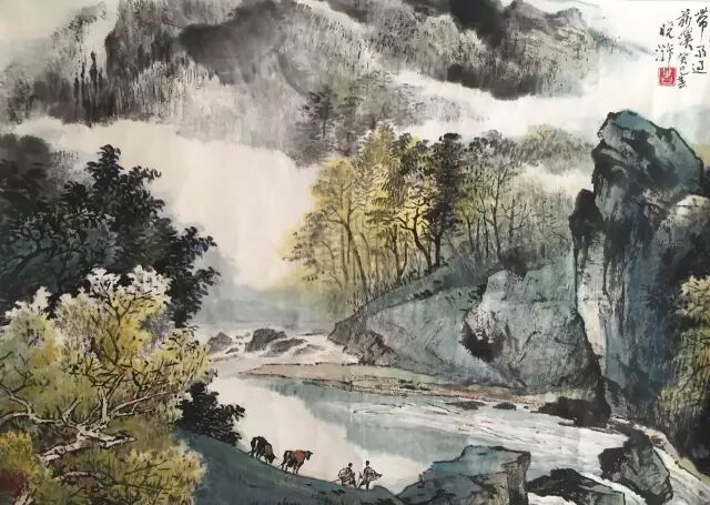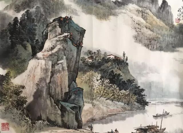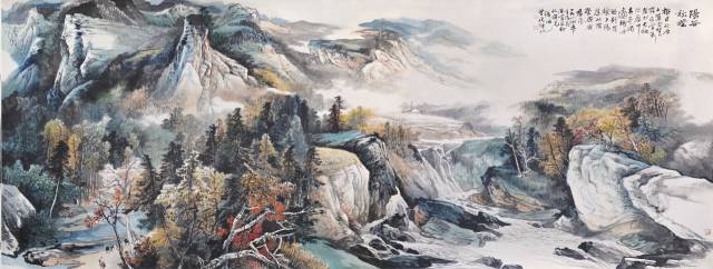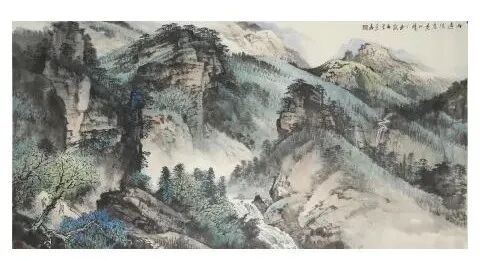 在吸取北派大师的苍莽浑厚和气势宏阔幽远的特性后,逐渐形成了表现湘南地域、气候等自然条件的清新图式,武陵源雄奇深邃的景象由气能扛鼎的劲健笔法表现出来,“真境逼而神境生”。