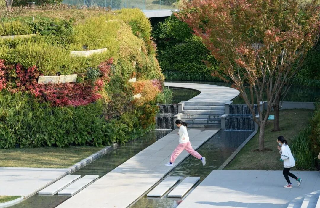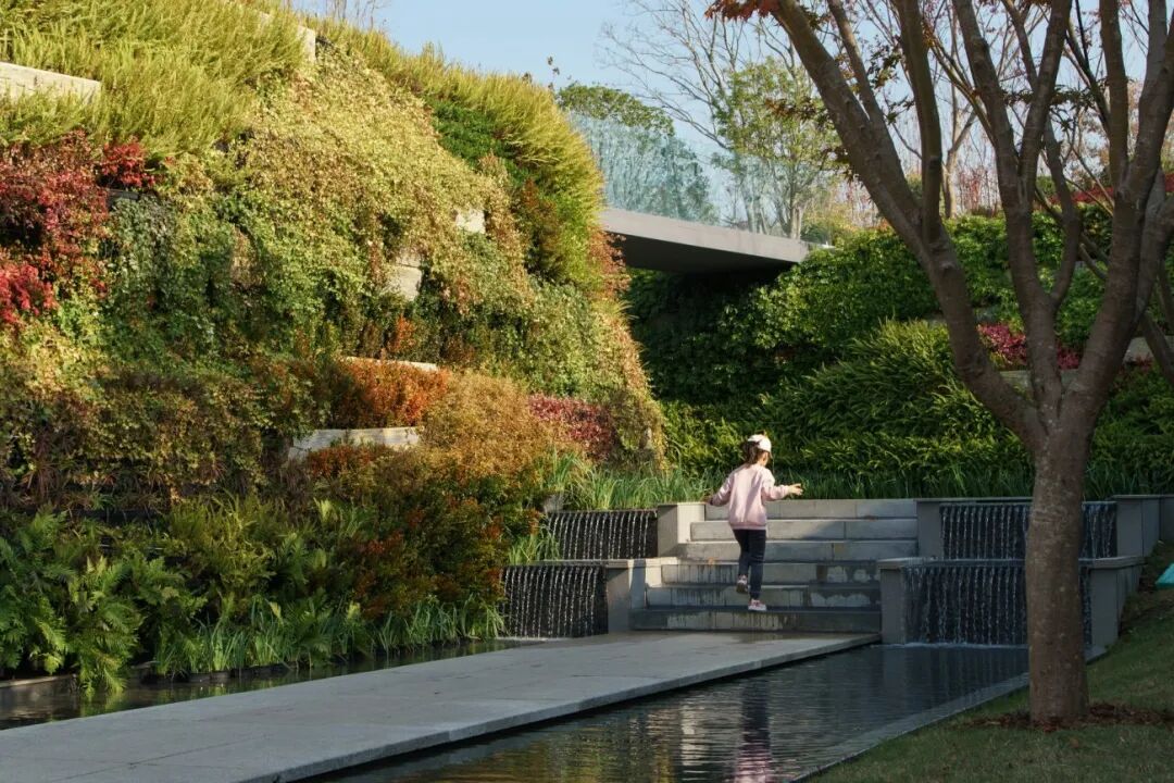 △ 多级叠水与两侧绿墙打造流水山谷花园 Valley Brook Garden created by multilevel cascades and vertical greening