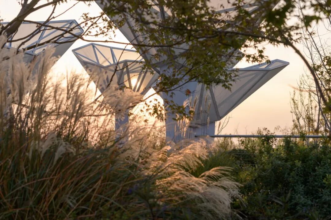 The Highlight of SHANGHAI GARDEN is also the landscape application of new technologies and materials, which create a dreamy and artistic atmosphere.  Digital design and construction are used on the landscape wall on the north side of the garden, presenting a magnificent and innovative "Painting of New Poetry of ‘Shan Shui’ Landscape ".  Meanwhile, streamlined 3D-printing seats are also integrated on the wall.The building called “Light and Shadow Show”, on the east side of the garden, displays the procedure of the design and construction of SHANGHAI GARDEN for visitors.  Its facade is formed by parametric design, which also represents superb construction techniques.  In the meanwhile, creating mysterious and novel light and shadow effects.