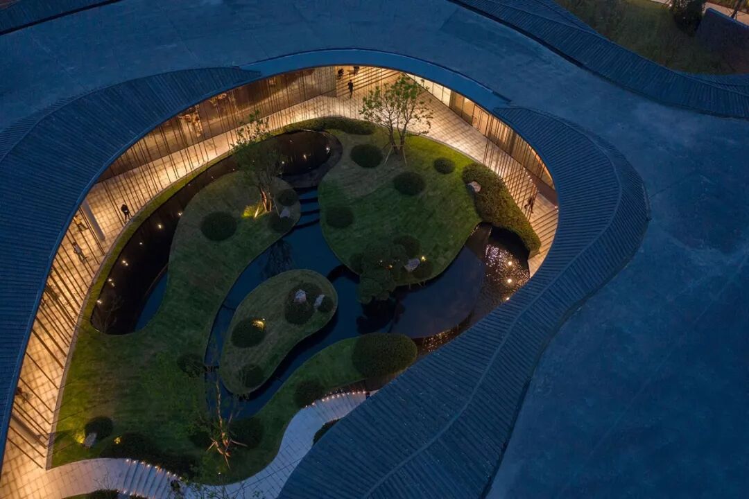 在这个项目中,通过熟练地运用其已有的一系列建筑元素与语言,以及对中国传统山水画的分析与诠释,王澍和他的团队以“重建一种当代中国本土的建筑学”为哲学基础,以“山水观法”为具体的空间营造策略,在景观和空间上营造了丰富的叙事和体验。