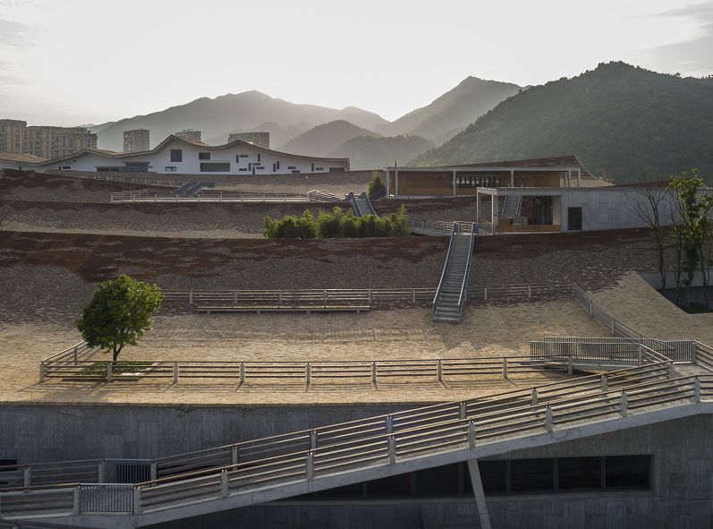 可上人的屋顶是整个建筑的最大亮点之一,提供了一个绝佳的眺望富春江的机会。上屋顶的通路,时而坡道舒缓,时而台阶陡峭,回环曲折,似游园,如登山。而多重路径的可选择性也是中国古典园林常用的造园手法。