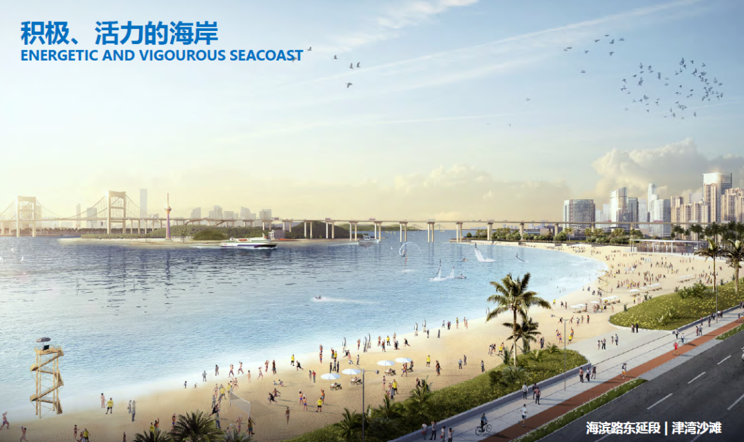 优化后的津湾沙滩以游憩型为主;海滨路东延段观海景观面较现状更加通透,市民亲水性提升
