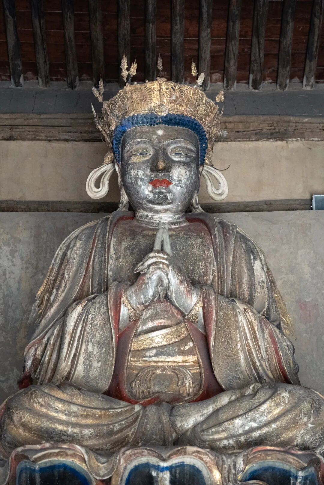 师佛左手抚膝,与通常看到的药师佛左手捧药器有所不同。