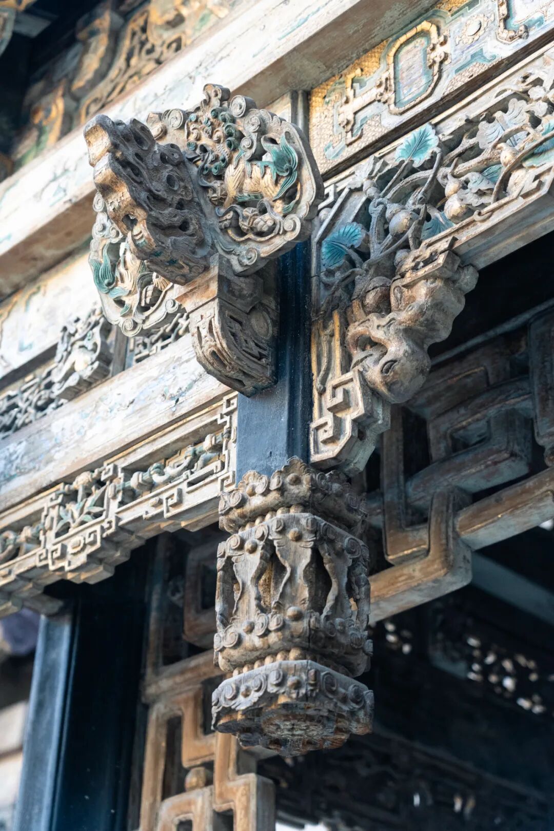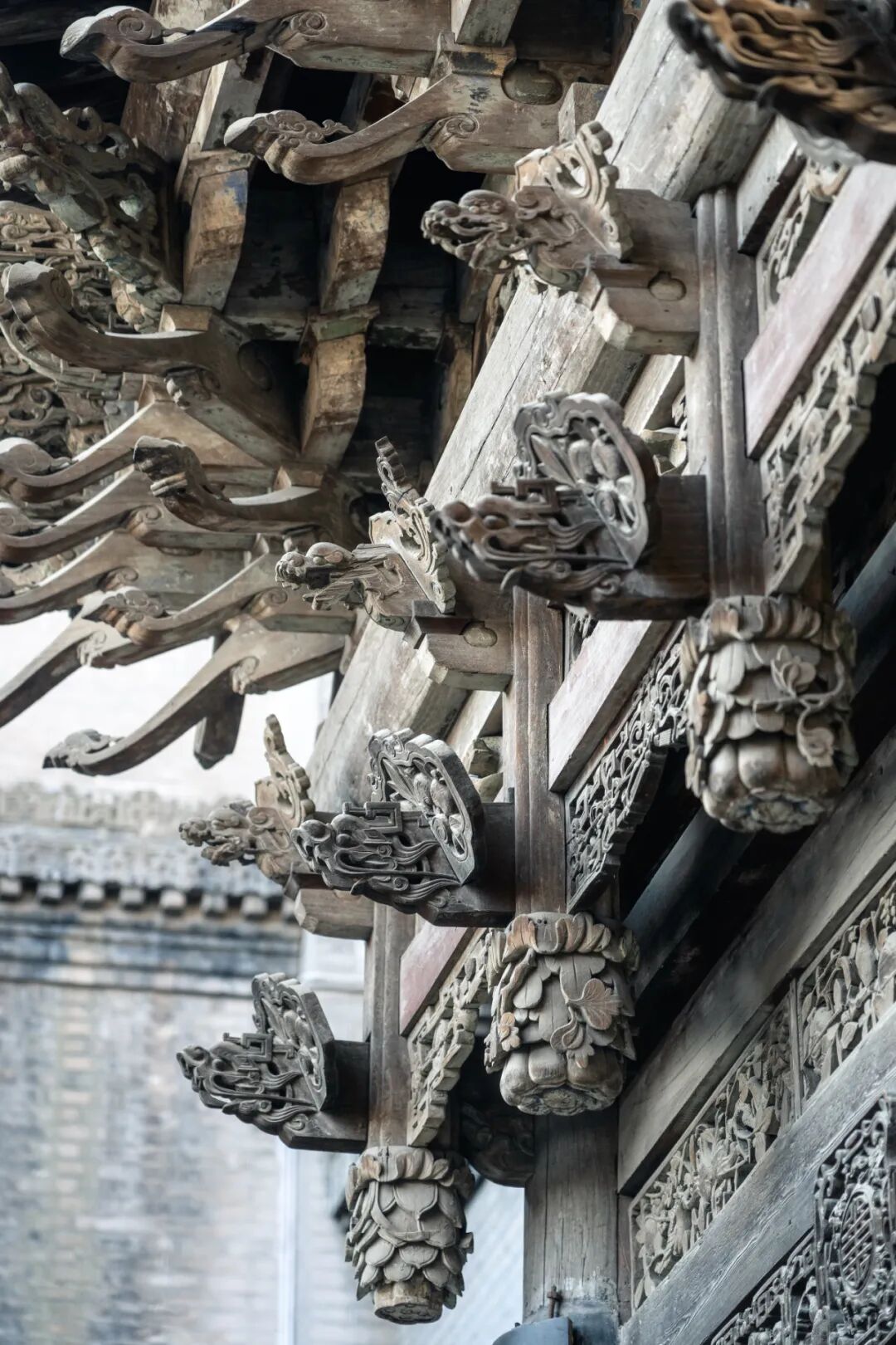 院内门楼上,四门垂莲柱与多层斗拱、挂落交相辉映,气势之恢弘难以言喻。