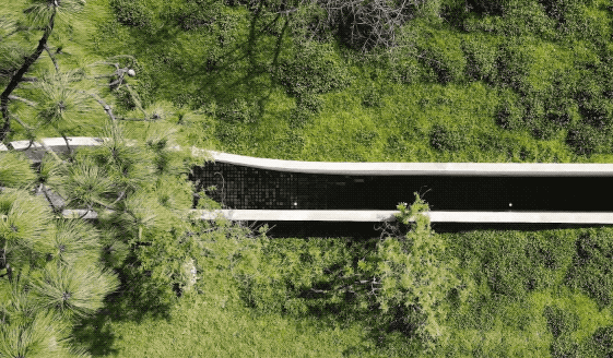 设计师认为保留山区的粗旷和原始氛围非常重要,因此选用裸露的混凝土材质为主要材料,在自然环境和雨水相互作用下形成质感肌理,与周边森林环境相得益彰。
