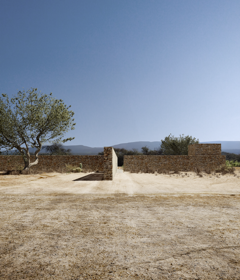 这是一处极具安全感且私密性的居所,位于墨西哥·莫雷里亚,采用下沉式的设计,建筑形态如同在大地上掀开了一张床单,当掀开床单时,自然而然产生了一个空间,业主可以在这个庇护所中仔细倾听大自然的轻声细语,篱笆、松树、橡树、栅栏和夏夜的萤火虫,将外界的熙熙攘攘隔绝开。